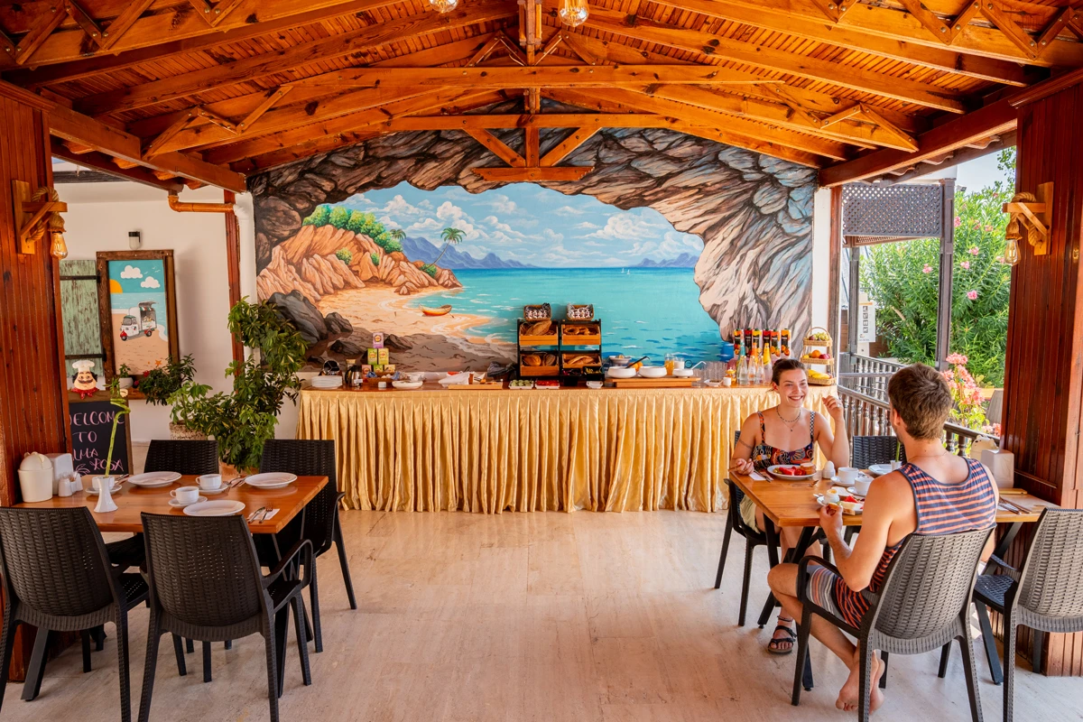 Hotel Palma Rosa’da konaklayan misafirlere sabahları ücretsiz açık büfe kahvaltı sunuluyor. 08:00 ile 10:30 arasında kahvaltı edebiliyorsunuz. Ayrıca akşam yemeklerinizi de tesisin kendi restoranında ücret karşılığında yiyebiliyorsunuz. Otelde bulunan barlardan ve kafeden dilediğiniz içecekleri alarak eşsiz bir manzarayı izleyerek yudumlayabiliyorsunuz.