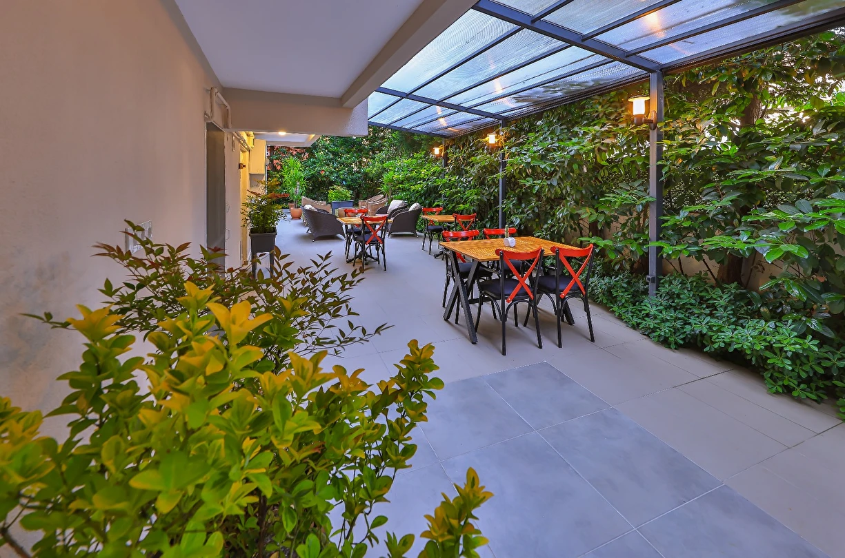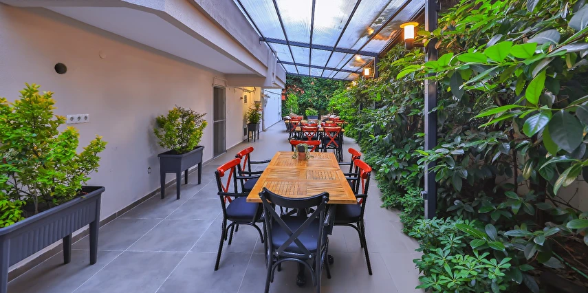 Palmiye Konuk Evi’nde her gün konuklara kahvaltı servis ediliyor. Ayrıca eşsiz yemeklerin sunulduğu bir restoran da Palmiye Konuk Evi’nde mevcut.