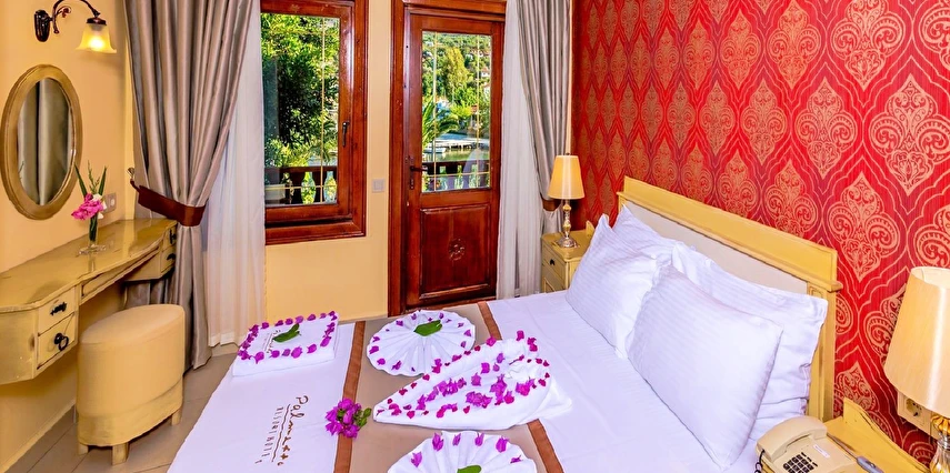 Denize sıfır konumda bulunan Palmetto Resort Hotel, göz kamaştırıcı doğal güzellikleriyle ünlü Selimiye’de konumlanıyor. Yeşil ve mavinin buluştuğu huzurlu atmosferiyle, hem dinlendirici bir tatil isteyen misafirlere hem de eğlence dolu günler yaşamak isteyenlere hitap ediyor. Marmaris’in eşsiz denizi ve yemyeşil doğasıyla iç içe bulunan tesis, misafirlerin ihtiyaç duyabileceği pek çok olanağın sunulduğu konforlu odaları ile hizmet veriyor. Tesisin odalarının tümünde; televizyon, klima, duş, saç kurutma makinesi, minibar ve gardırop gibi olanaklar bulunuyor. Denize alternatif olarak sunulan açık yüzme havuzunda güneşin ve suyun tadını çıkarabilirsin. Tesisin misafirlere sunduğu hizmetler arasında; özel plaj alanı, kablosuz internet bağlantısı, çamaşırhane, 24 saat resepsiyon, bar ve restoran olanakları da bulunuyor. Sade ve şık dekore edilen odalarında misafirlerine konforlu bir tatil olanağı sunan Palmetto Resort Hotel, Marmaris'in eşsiz denizi ve doğal güzellikleri ile iç içe unutulmaz bir konaklama vadediyor.