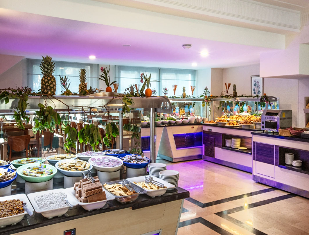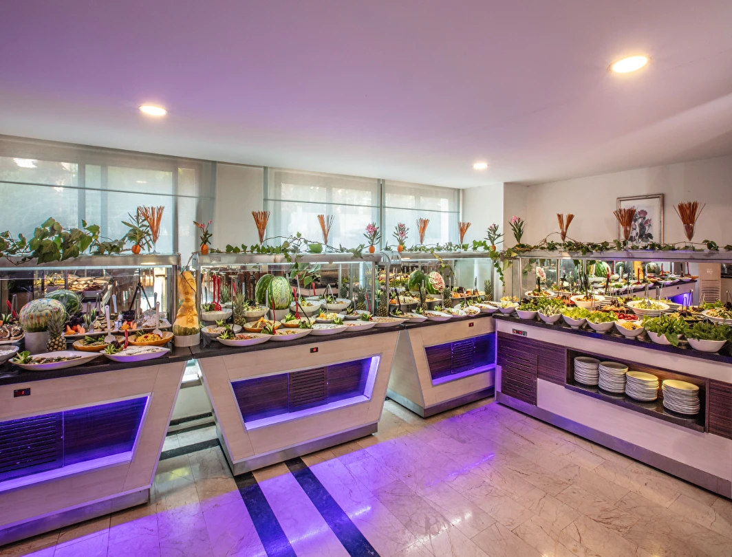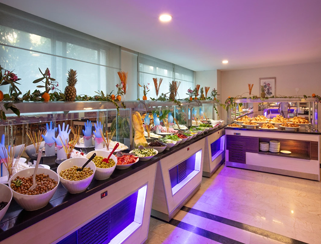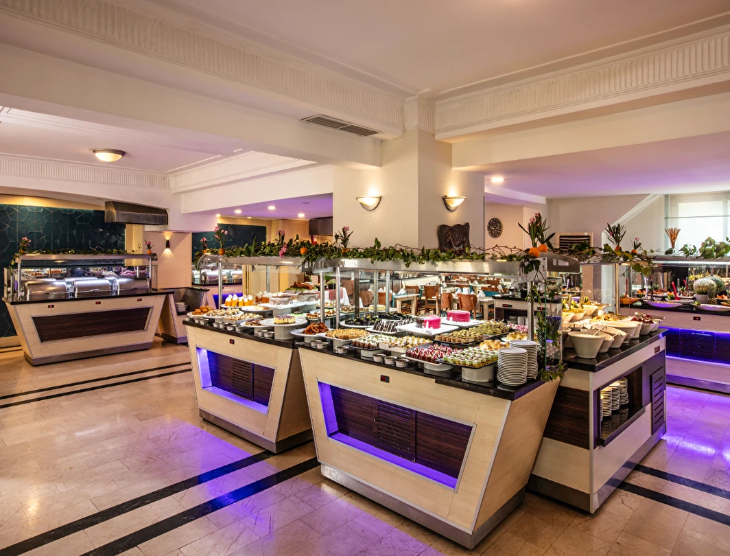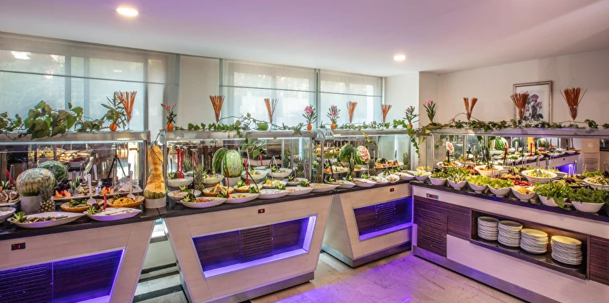 Tesisin belirlemiş olduğu markalar dahilinde 10:00 - 24:00 saatleri arası yerli alkollü, alkolsüz içecekler ücretsizdir. Tüm servisler Self servistir. İthal alkollü içecekler, dondurma, taze sıkılmış portakal suyu ve Türk kahvesi ücretlidir.