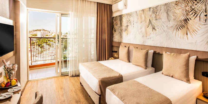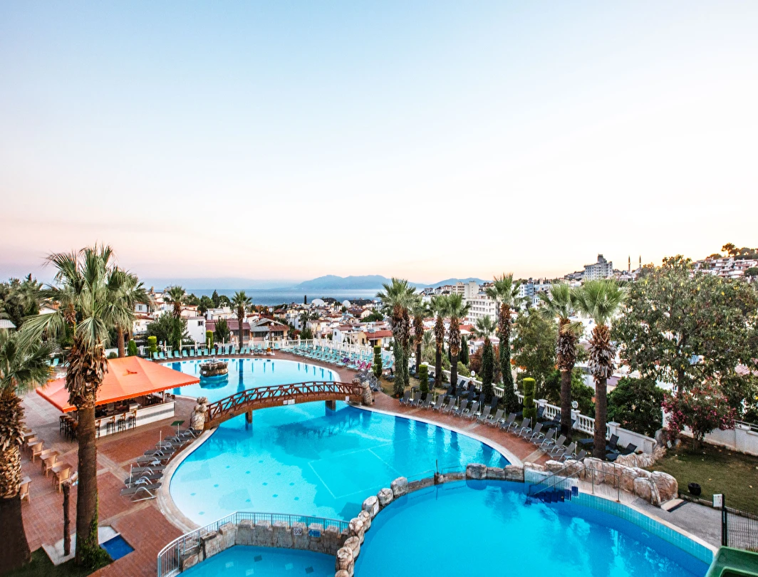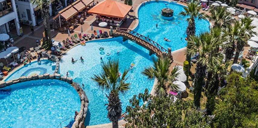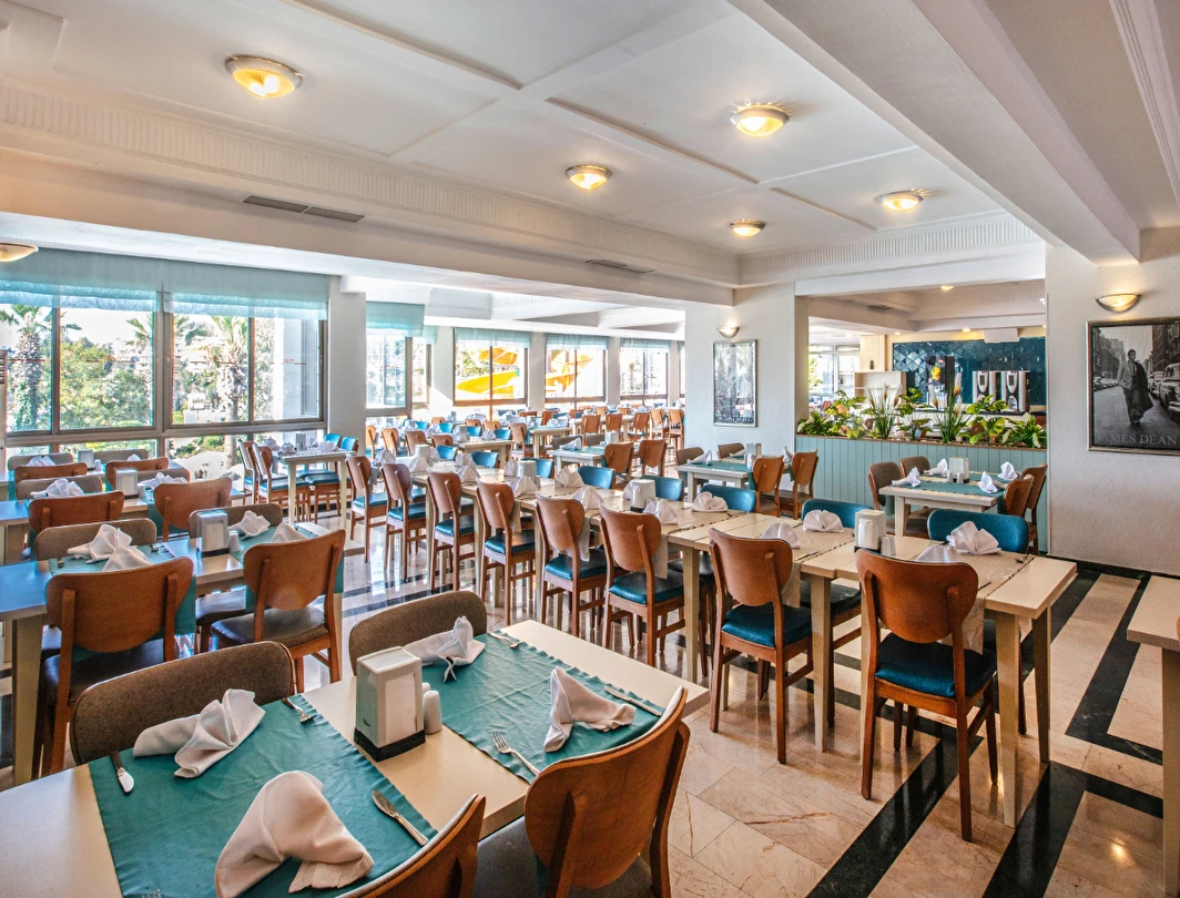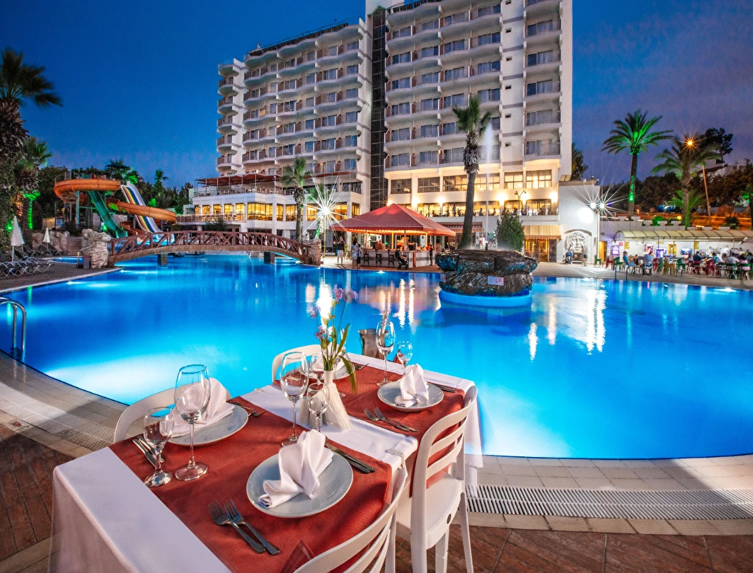 Tesisin belirlemiş olduğu markalar dahilinde 10:00 - 24:00 saatleri arası yerli alkollü, alkolsüz içecekler ücretsizdir. Tüm servisler Self servistir. İthal alkollü içecekler, dondurma, taze sıkılmış portakal suyu ve Türk kahvesi ücretlidir.