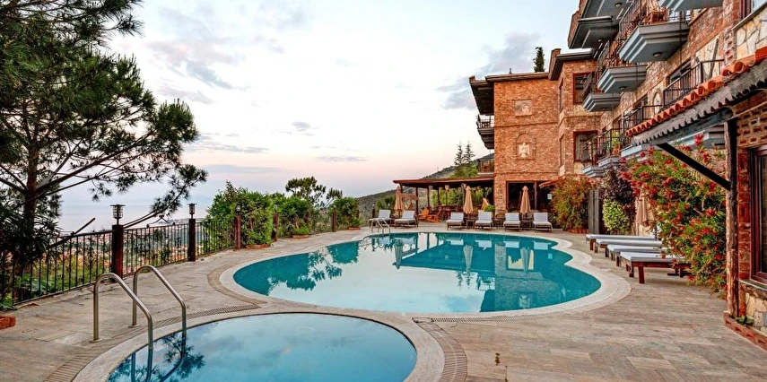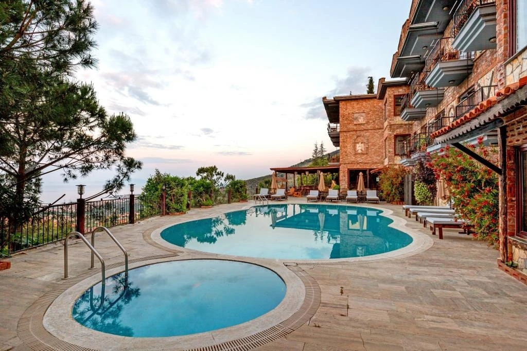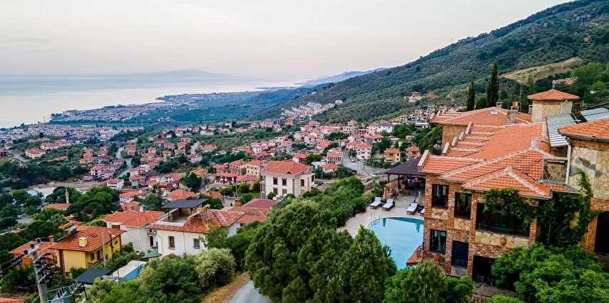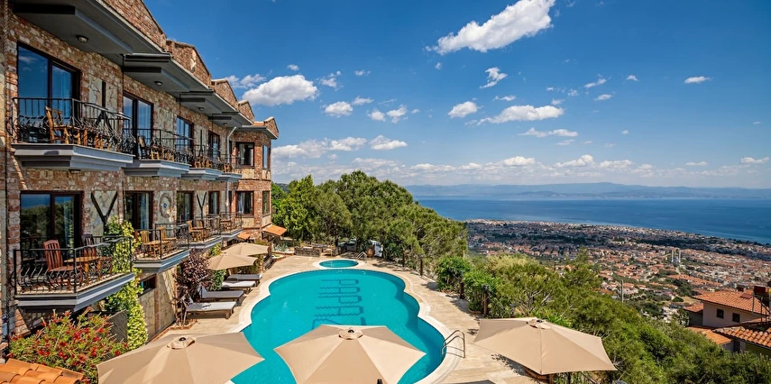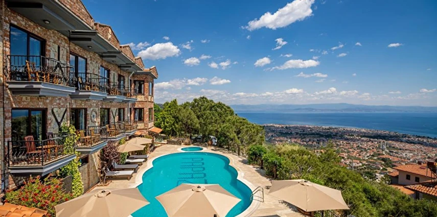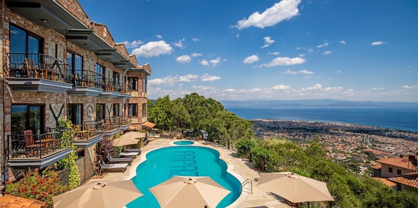 Balıkesir Altınoluk’ta bulunan ve bölgeyi tepeden gören olağanüstü manzaraya sahip Papazlıkhan Otel, taşlardan oluşturulan dış duvarları ve havuzlu bahçesi ile misafirlerine kusursuz bir atmosfer sağlıyor.