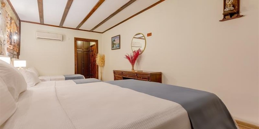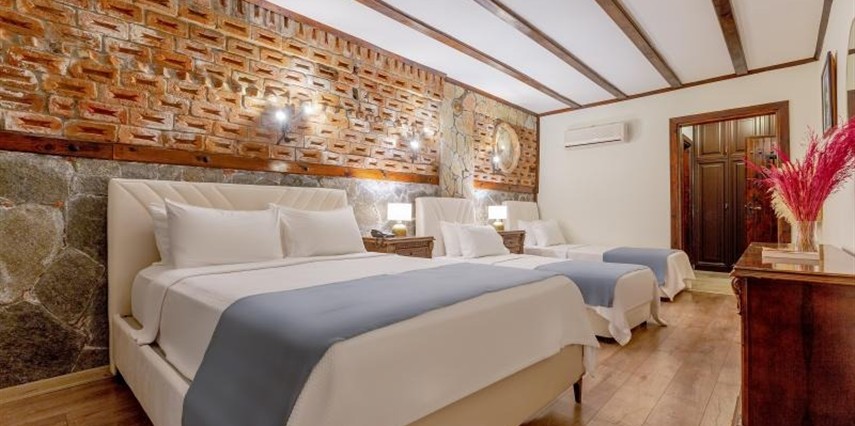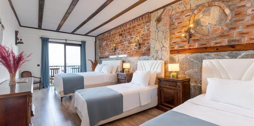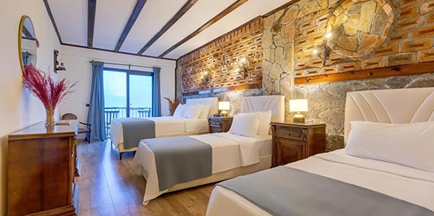 Tesiste dört tip konaklama birimi bulunuyor. Bu birimler 18 m² büyüklüğündeki iki kişilik tek büyük yataklı oda, 21 m² olan üç kişilik oda, 24 m² boyutlarındaki dört kişilik oda ve 46 m² büyüklüğündeki iki kişilik suit seçeneklerinden oluşmaktadır. Odaların tamamında özel banyo, saç kurutma makinesi, terlik, ücretsiz banyo malzemesi, klima, ses yalıtımı, kablosuz internet bağlantısı ve minibar yer almaktadır.