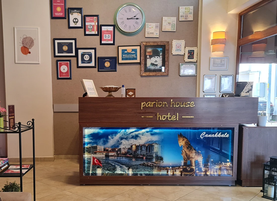 Feribot iskelesine, Cumhuriyet meydanına ve Çanakkale kordona sadece birkaç adım mesafede bulunan Parion House, beyazın ve mavinin buluştuğu şık tasarımlı odaları ile misafirleri için eşsiz hizmet kalitesi sunmaktadır.