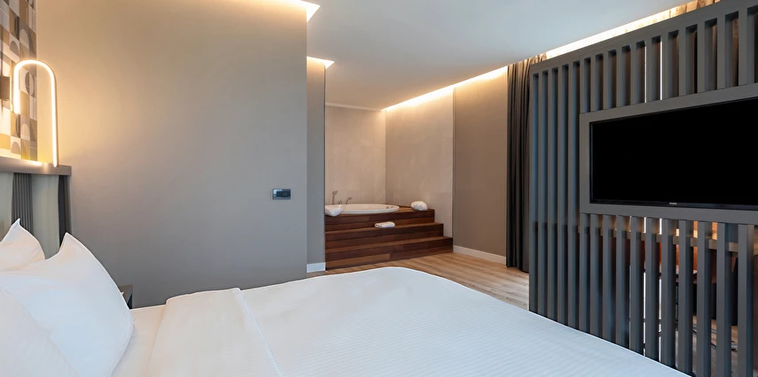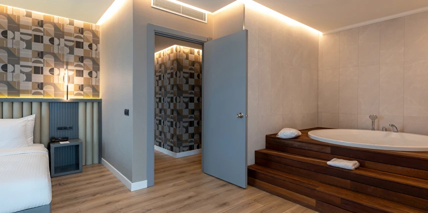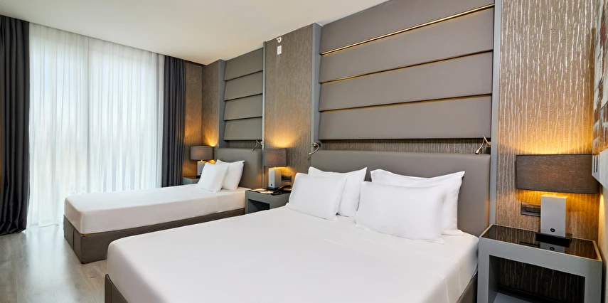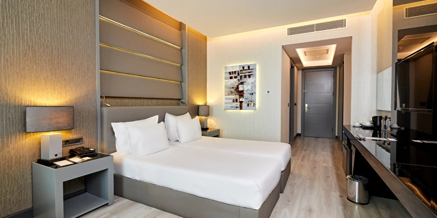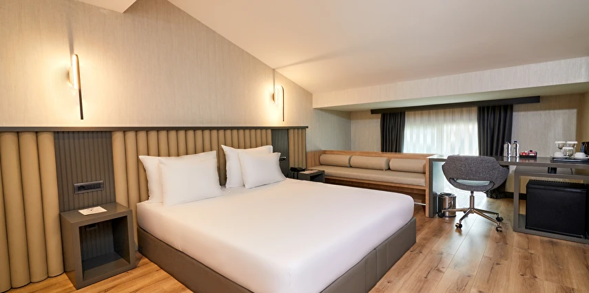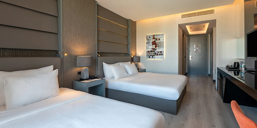 Modern ve fonksiyonel tasarıma sahip odalarda, misafirlerin konforu için tüm detaylar özenle planlanmıştır.