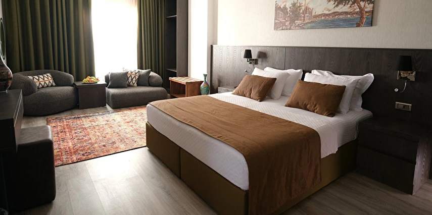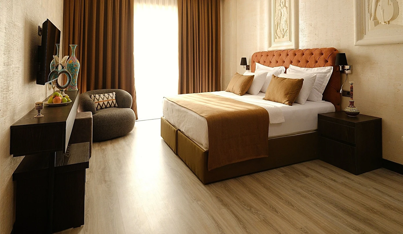 Kusursuz Konaklama: Modern çizgilerle tasarlanmış, taş mimarinin zarafetini taşıyan ferah odalarımızda kendinizi evinizde hissedeceksiniz.