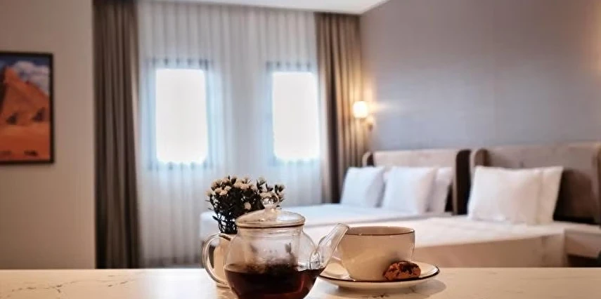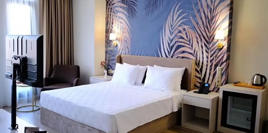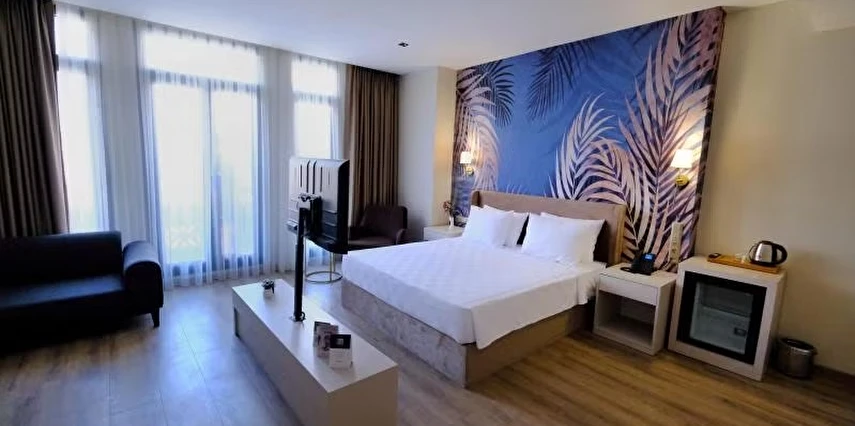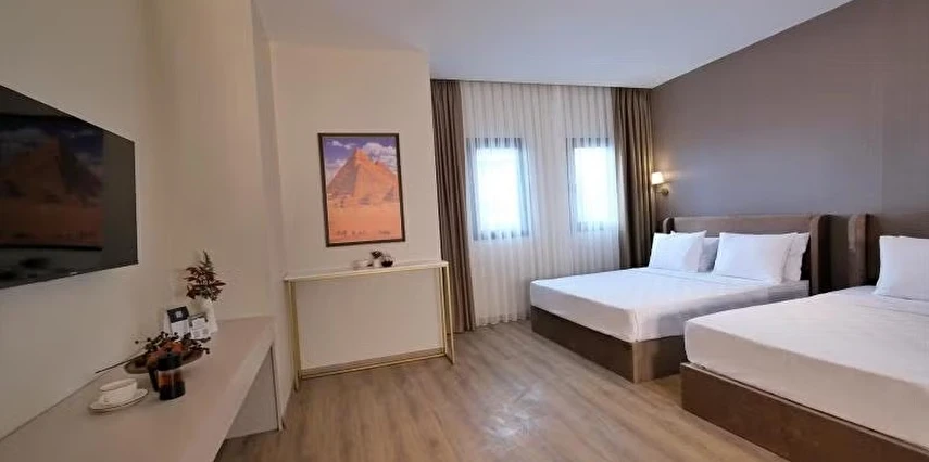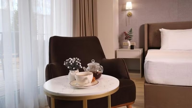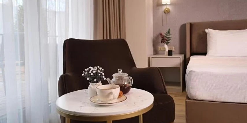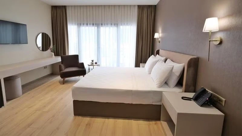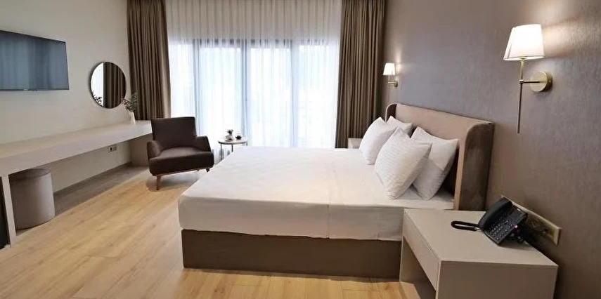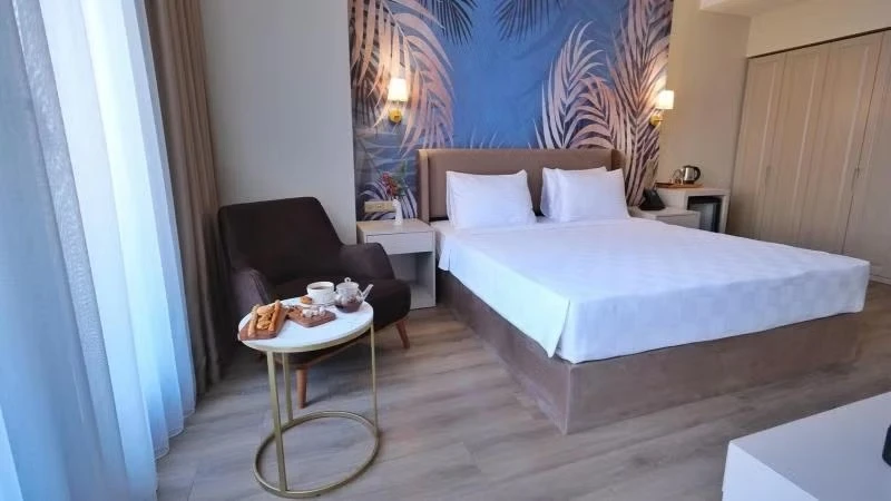 Varıştan çıkışa kadar 24 saat resepsiyon ve oda servisi hizmeti sunuluyor — konforlu, güvenli ve konuk dostu hizmet anlayışıyla.
