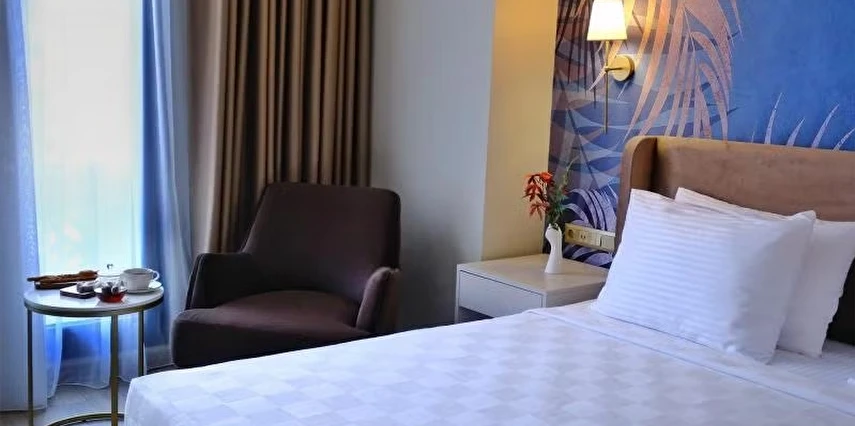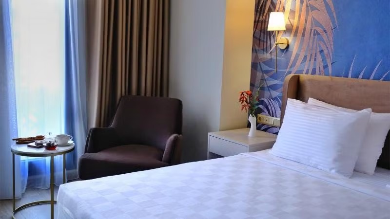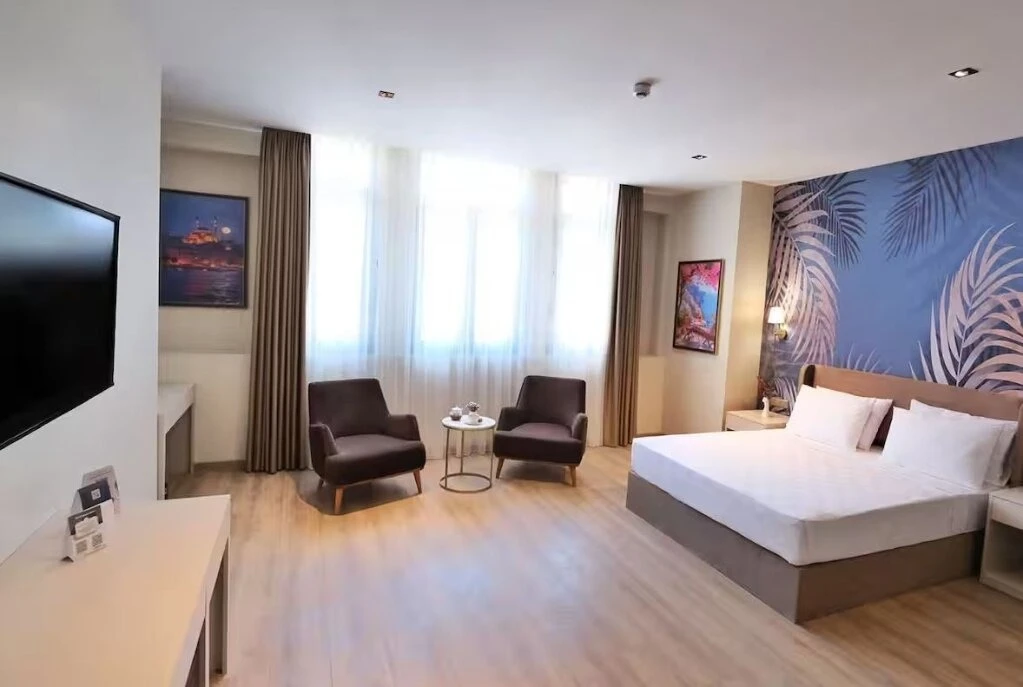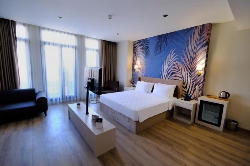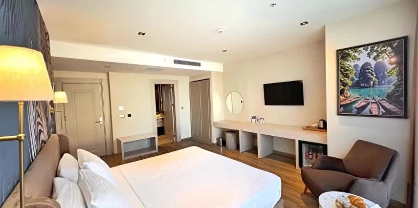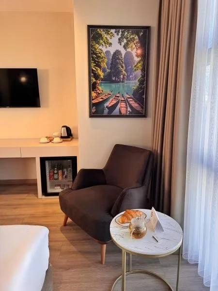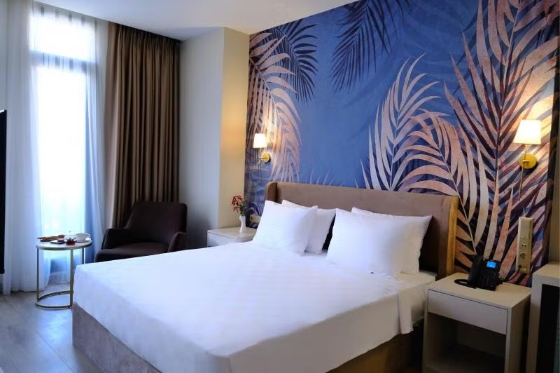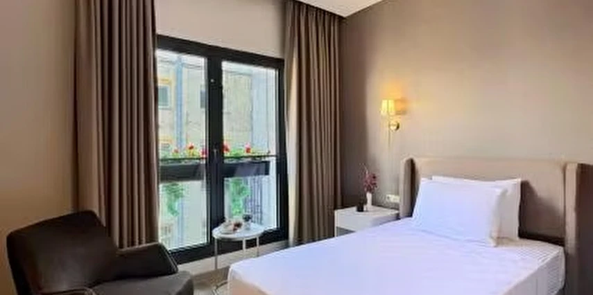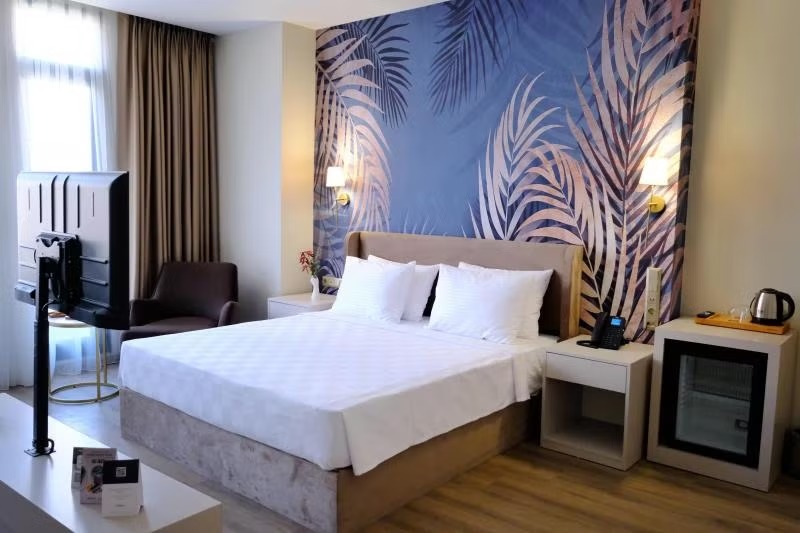 Varıştan çıkışa kadar 24 saat resepsiyon ve oda servisi hizmeti sunuluyor — konforlu, güvenli ve konuk dostu hizmet anlayışıyla.