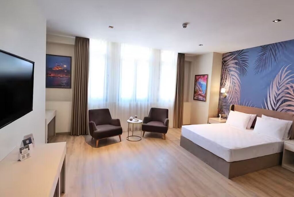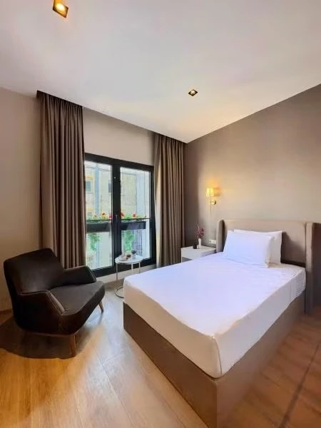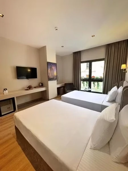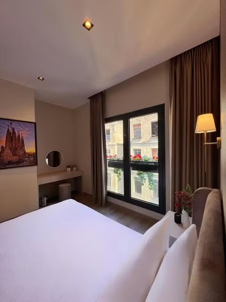 Bazı odalarda “Fransız balkon” veya şehir manzarası gibi ekstra konforlar bulunuyor.