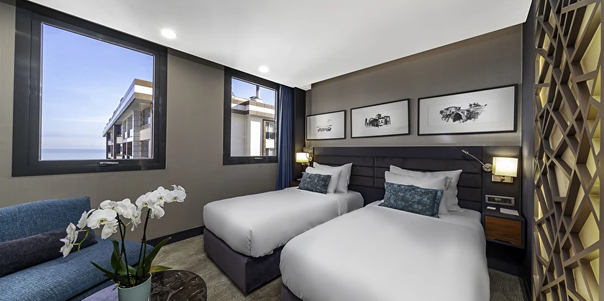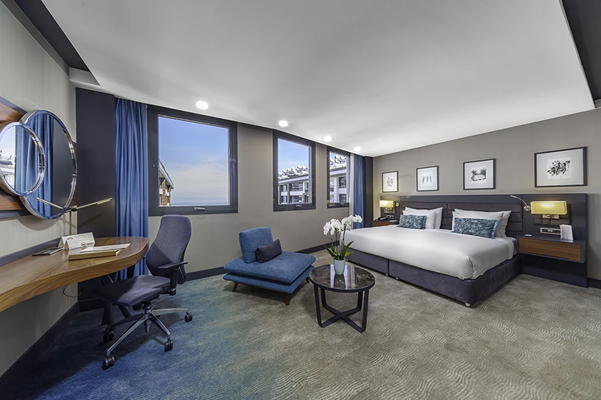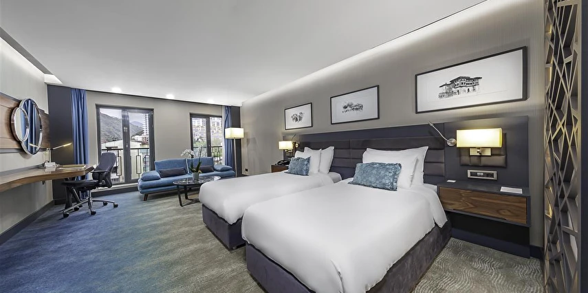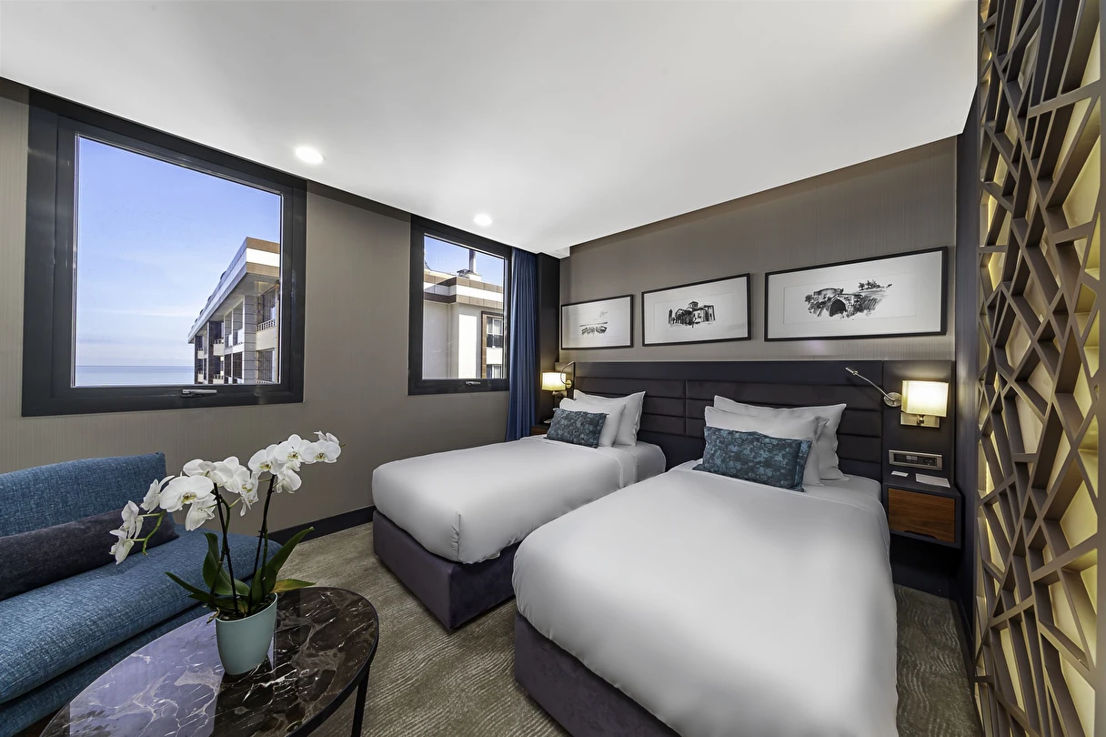 Odalarında, klima, oturma alanı, emanet kasası, Wi-Fi, düz ekran uydu TV, elektrikli su ısıtıcısı, mini bar, ücretsiz banyo malzemeleri, terlik ve saç kurutma makinesi bulunmaktadır. Bazı odalarda katlanabilir yataklar, teras, deniz veya şehir manzarası bulunur.