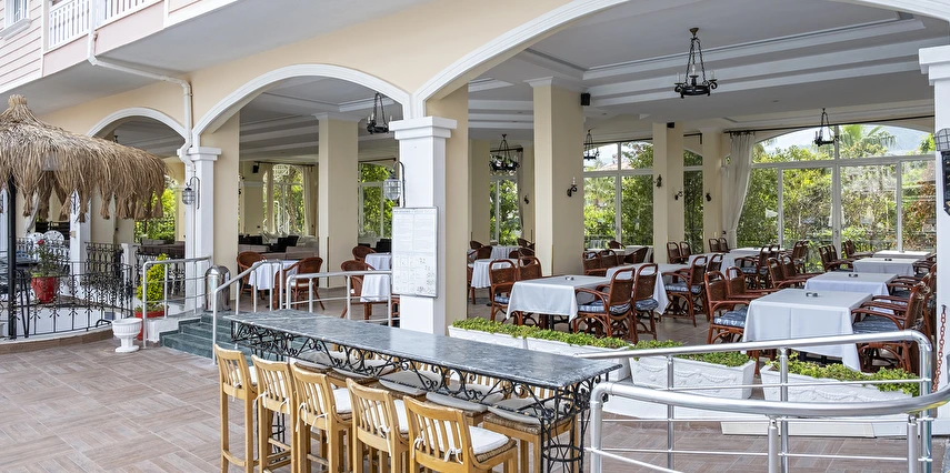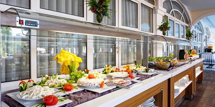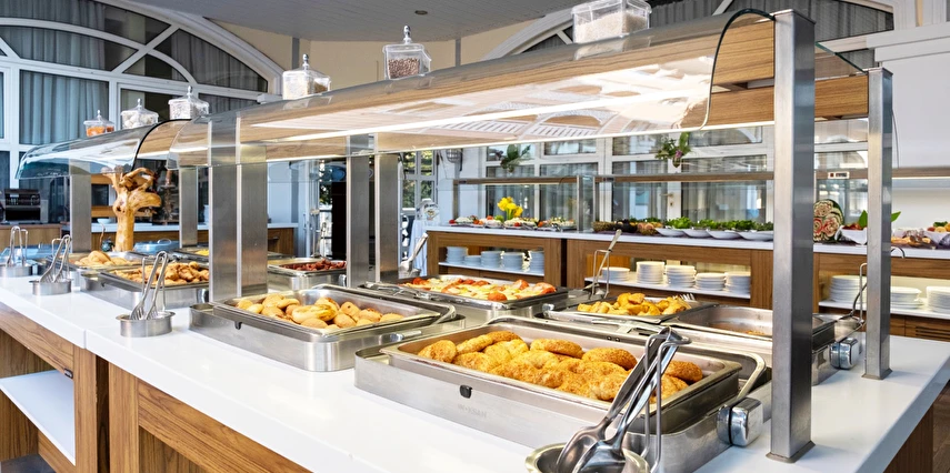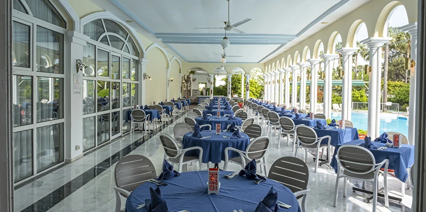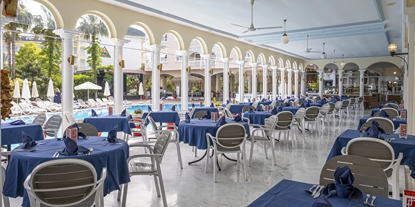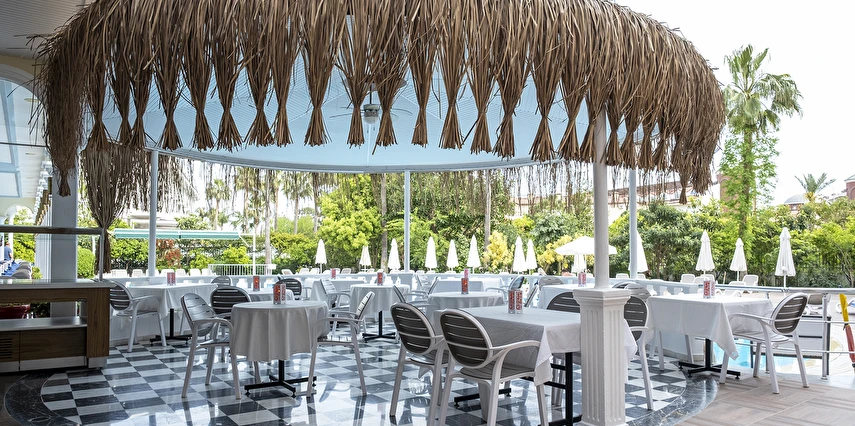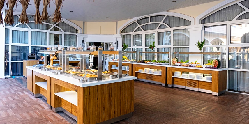 Sabah kahvaltısı, öğle ve akşam yemekleri açık büfe olup tesisin belirlediği markalar dahilinde yerli alkollü ve alkolsüz içecekler 11:00 ile 23:00 saatleri arasında ücretsizdir. İthal ve yabancı içecekler ücretlidir.