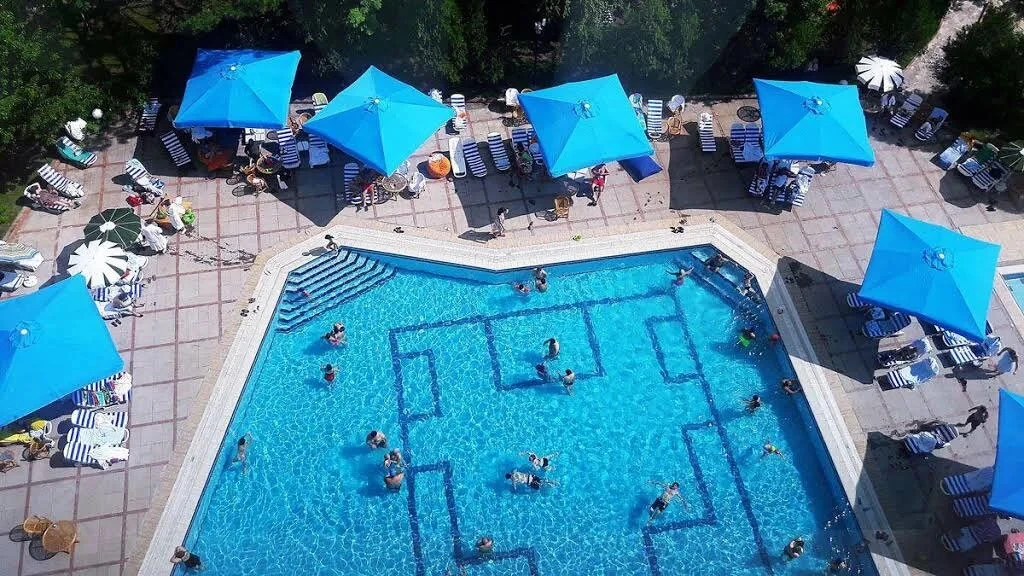 Sıcak yaz günlerinin bunaltıcı havasından kaçıp serinlemek istediğinizde , soğuk kış günlerinde kar yağarken kendinizi sıcak termal sulara bırakmak istediğinizde derinliği 140 cm olan yarı olimpik açık havuzumuz sizleri bekliyor olacak.