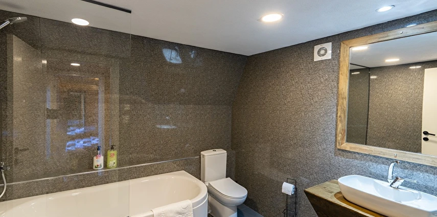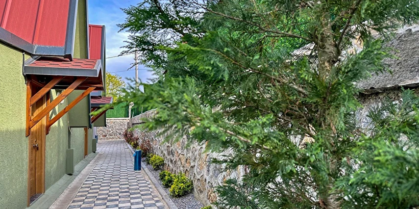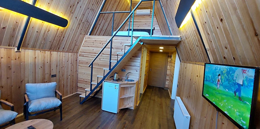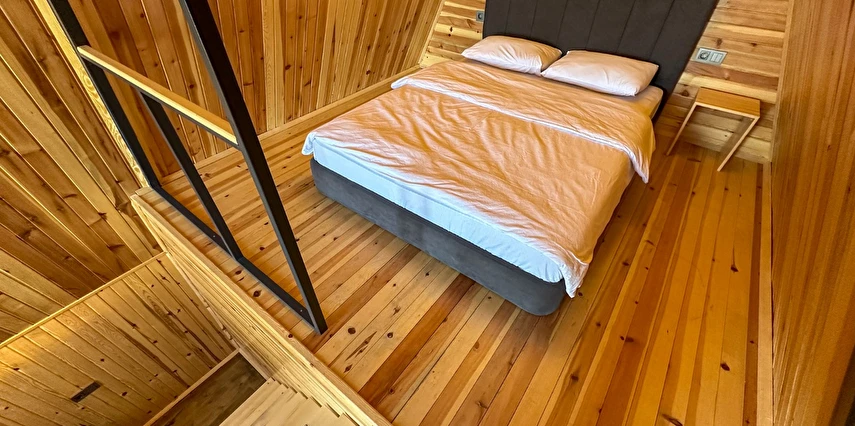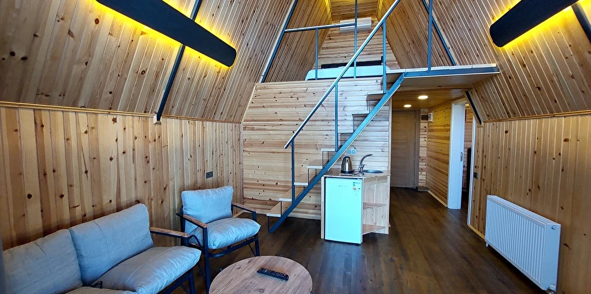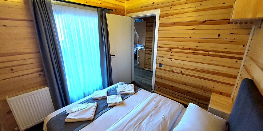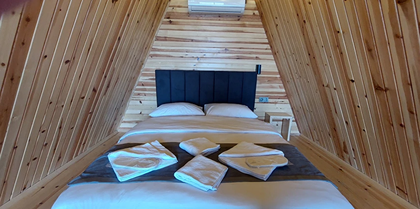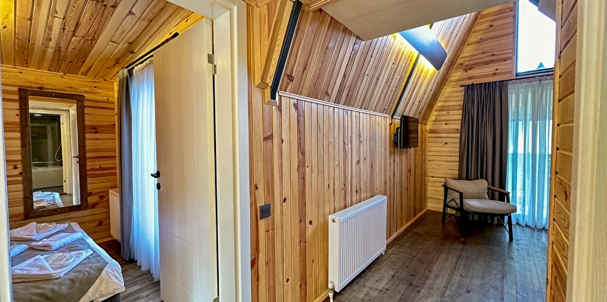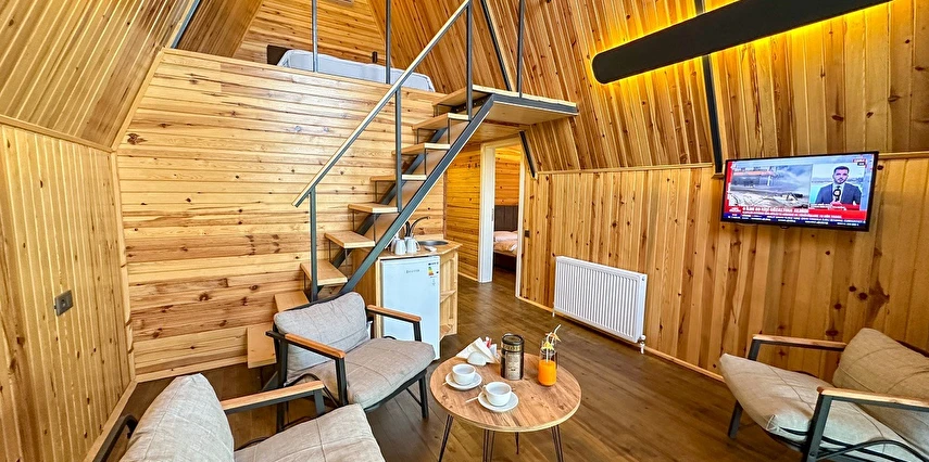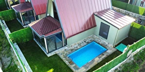 10 Adet size özel tasarlanmış Bungalovların iç kullanım alanı; yatak odası, banyo, oturma odası ve loft yatak odasıyla toplam 50 m2 dir. Gene sadece sizin kullanımınıza ait 12 m2 kapalı ve içerisinde şömine soba olan teras, 12 m3 havuz dahil olmak üzere, 33 ile 55 m2 arasında değişen bahçe mevcuttur.