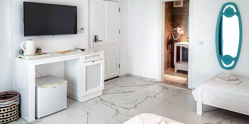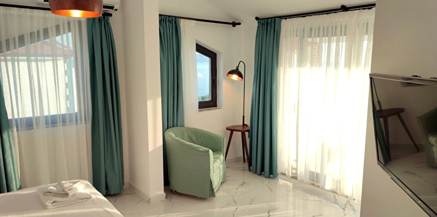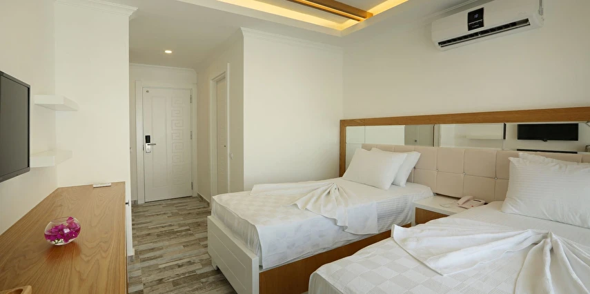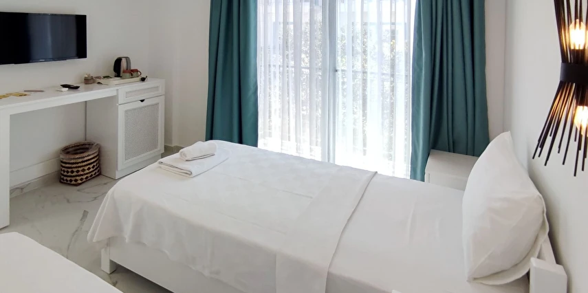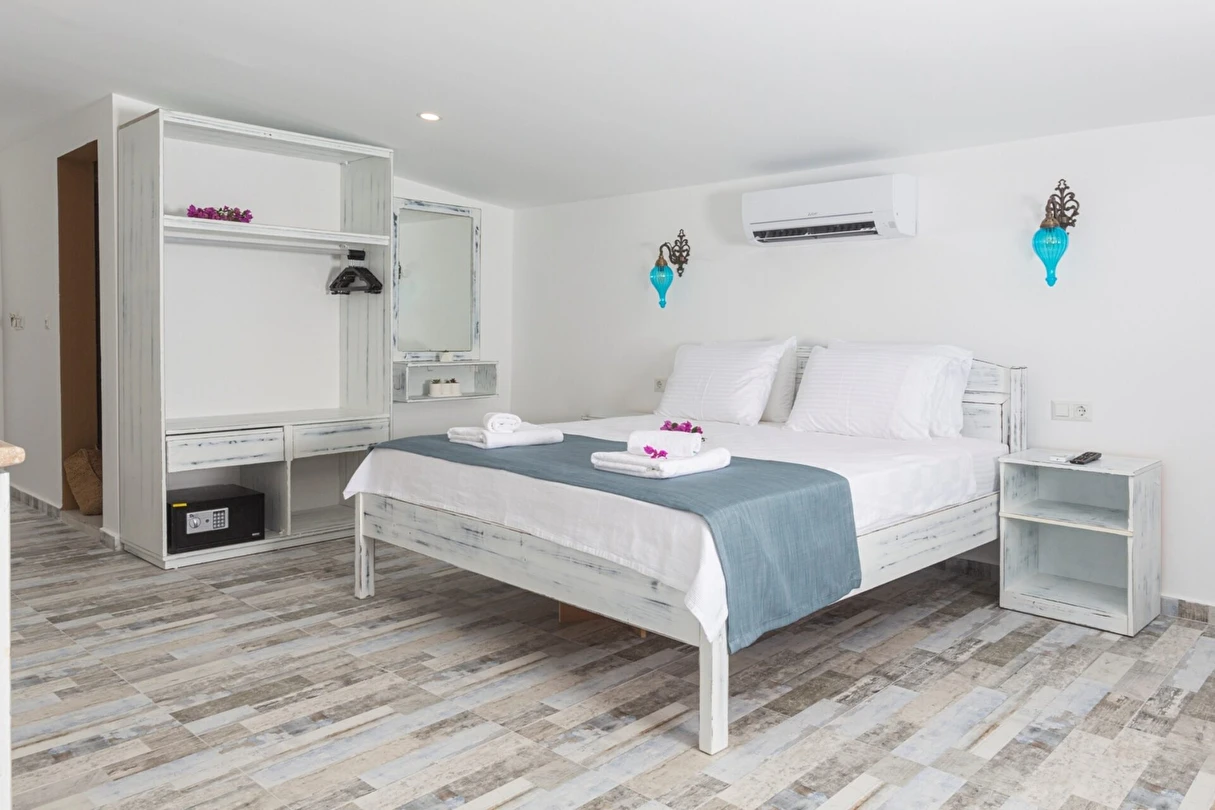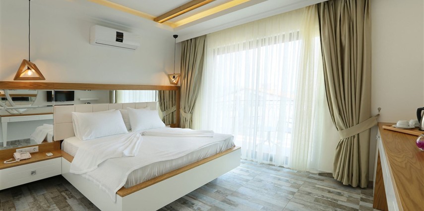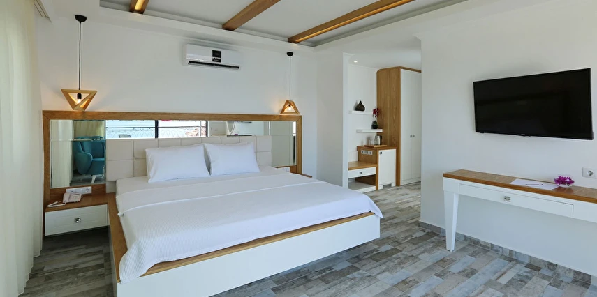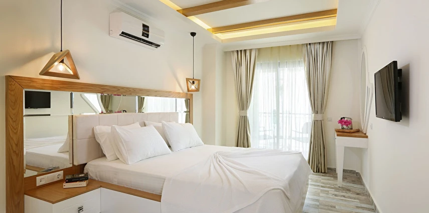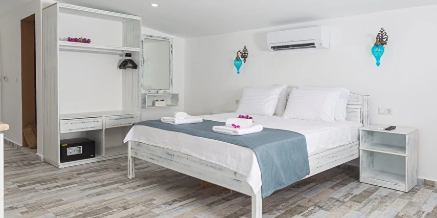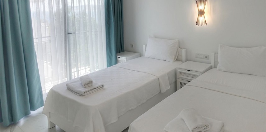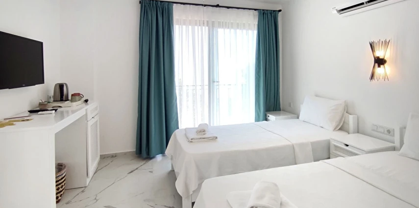 Modern ve sade detaylarla dekore edilmiş odalarda konfor ön planda tutulmuştur. Odalar; klima, televizyon, Wi-Fi ve özel banyo gibi olanaklarla donatılmış olup misafirlerin tatilleri boyunca ihtiyaç duyabilecekleri tüm temel imkanları sunar. Tesisin samimi ve sıcak atmosferi, misafirlerine kendilerini evlerinde hissettirmeyi amaçlar.