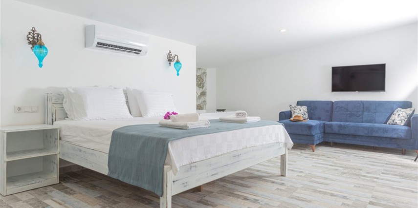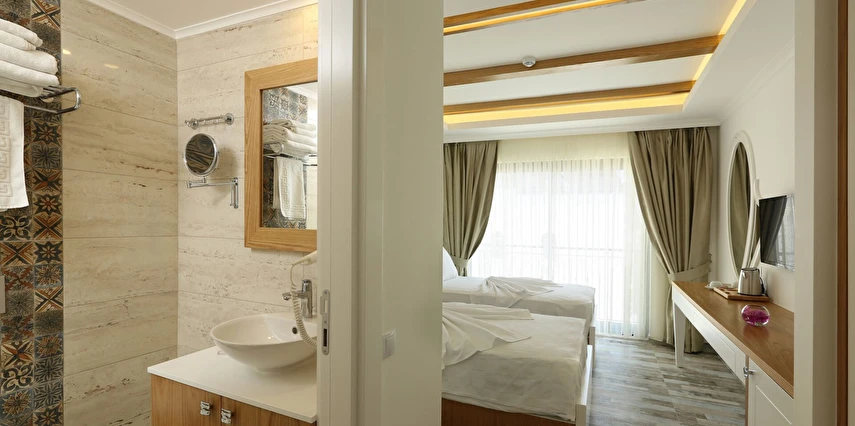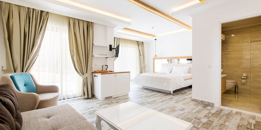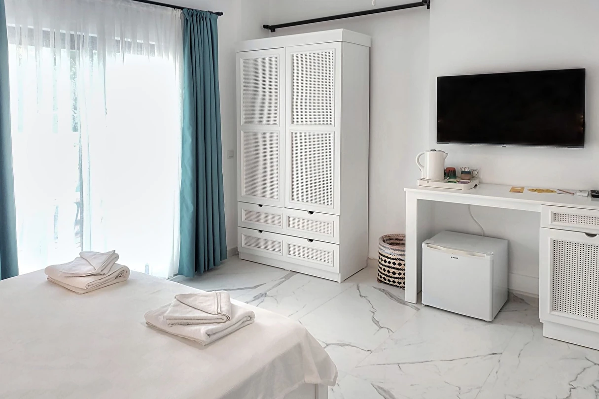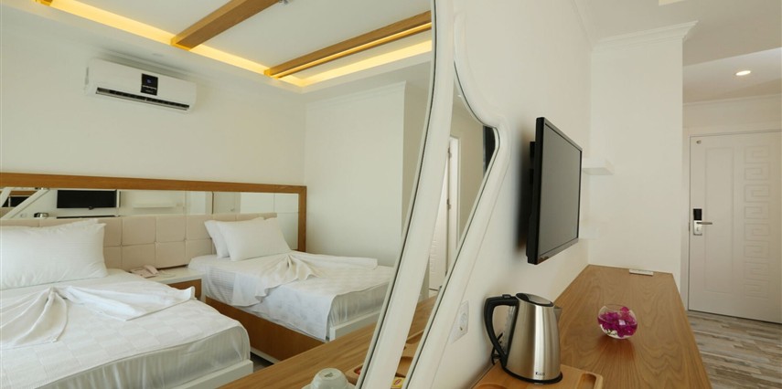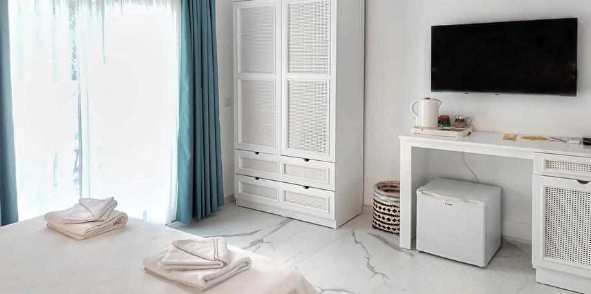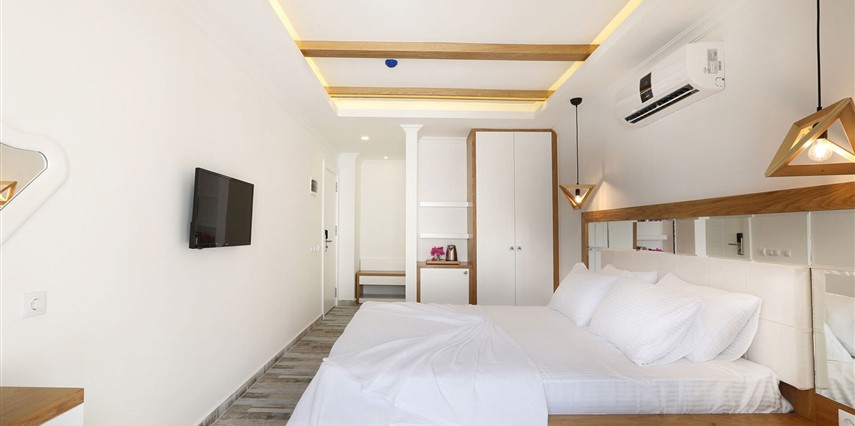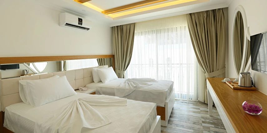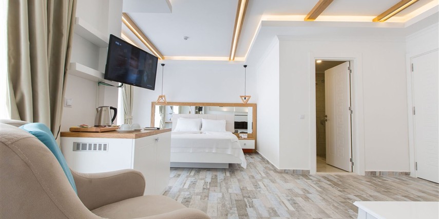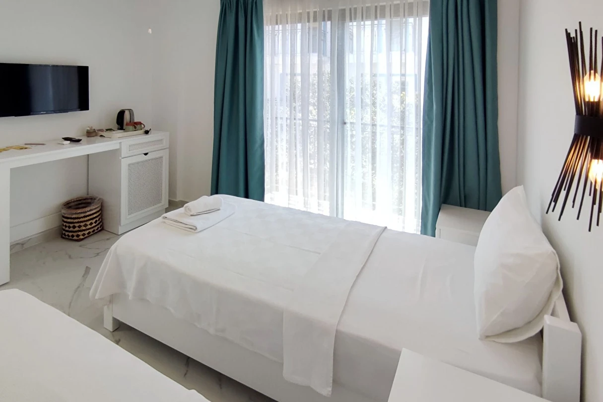 Modern ve sade detaylarla dekore edilmiş odalarda konfor ön planda tutulmuştur. Odalar; klima, televizyon, Wi-Fi ve özel banyo gibi olanaklarla donatılmış olup misafirlerin tatilleri boyunca ihtiyaç duyabilecekleri tüm temel imkanları sunar. Tesisin samimi ve sıcak atmosferi, misafirlerine kendilerini evlerinde hissettirmeyi amaçlar.