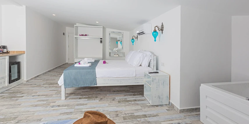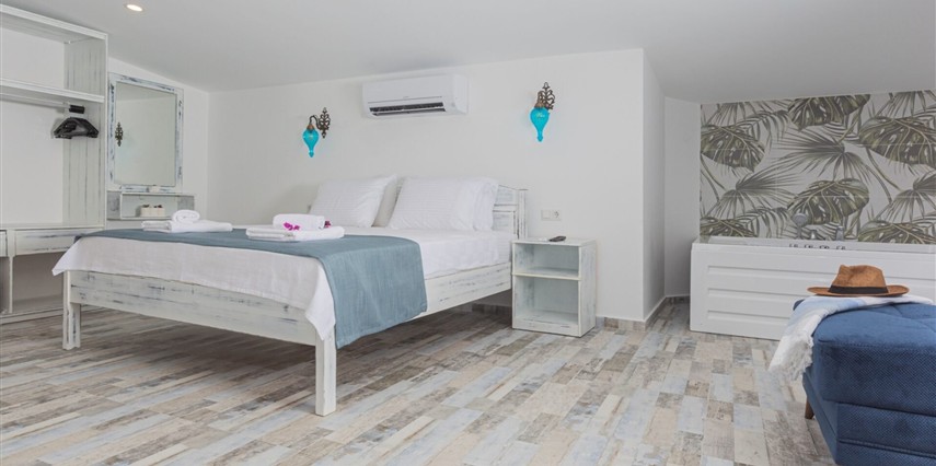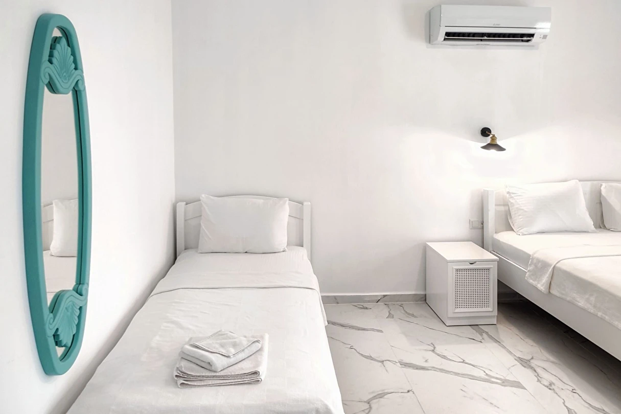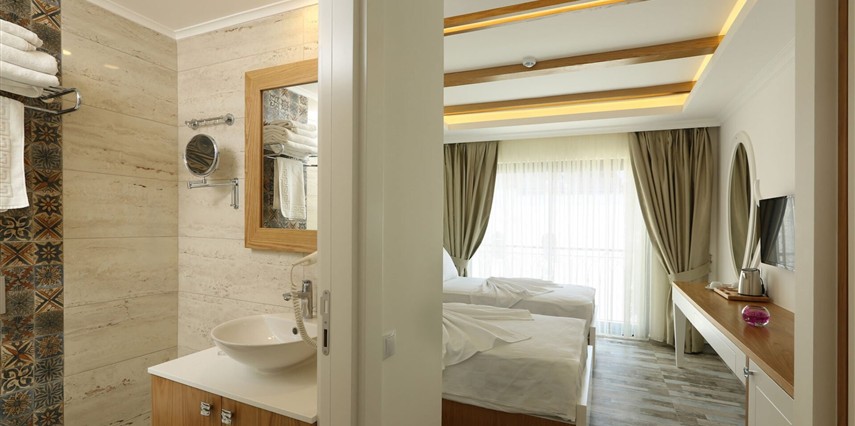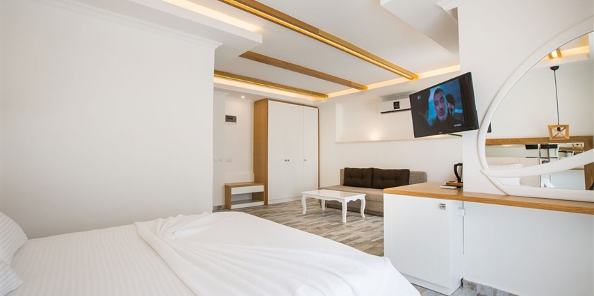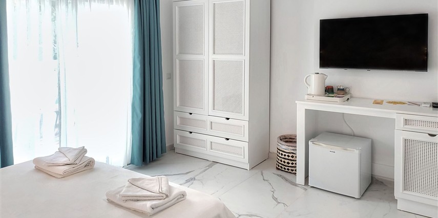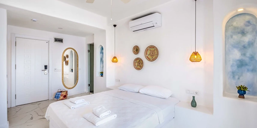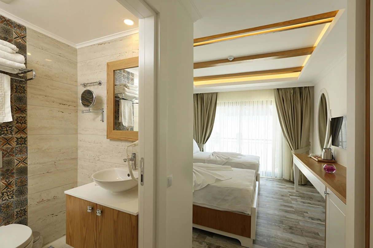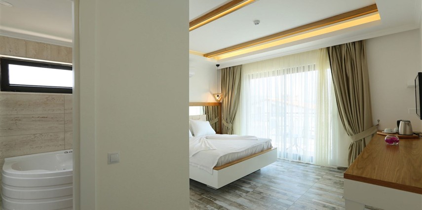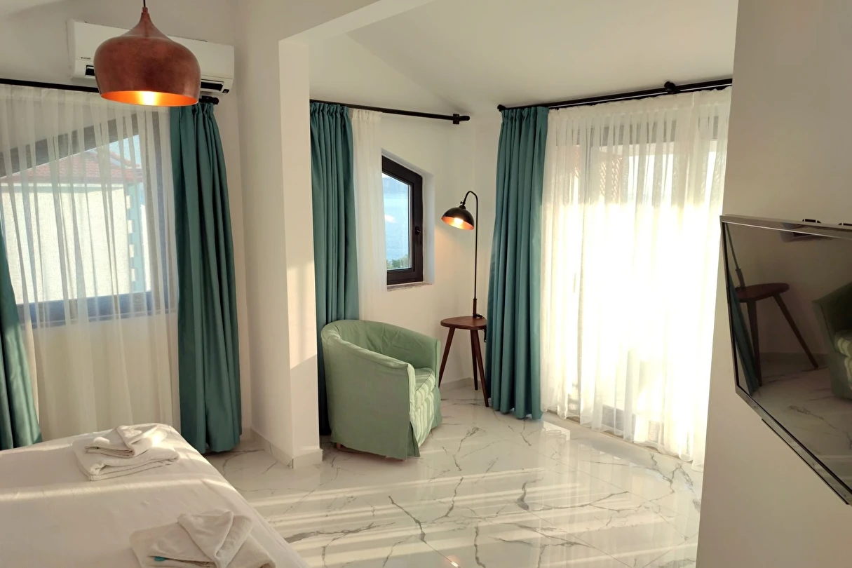Modern ve sade detaylarla dekore edilmiş odalarda konfor ön planda tutulmuştur. Odalar; klima, televizyon, Wi-Fi ve özel banyo gibi olanaklarla donatılmış olup misafirlerin tatilleri boyunca ihtiyaç duyabilecekleri tüm temel imkanları sunar. Tesisin samimi ve sıcak atmosferi, misafirlerine kendilerini evlerinde hissettirmeyi amaçlar.