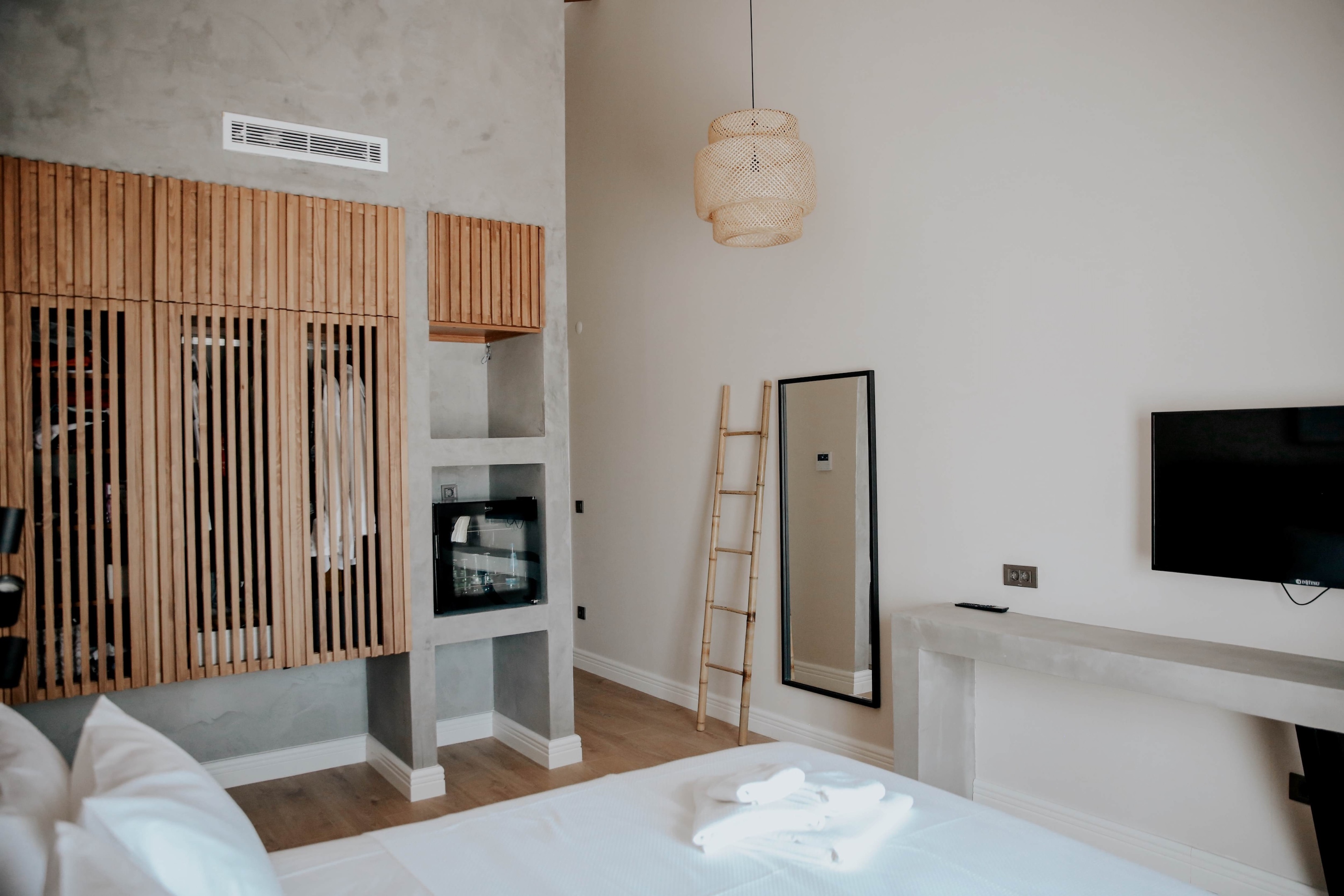 Odalar, modern ve temiz çizgilerle dekore edilmiş olup, ferahlıklarıyla dikkat çeker. Ekonomi odalardan (yaklaşık 18 m², çift kişilik yatak) deluxe balkonlu seçeneklere kadar çeşitlilik gösteren odalarda, akıllı TV, minibar, kahve makinesi, kasa ve premium yatak takımları gibi konforlu detaylar bulunur. Otelin bahçesi, Alaçatı'nın eşsiz dokusuyla bütünleşmiş bir huzur alanı sunarken, sezonluk açık havuz, teras ve bahçe gibi ortak mekanlar misafirlerin keyifli vakit geçirmesine olanak tanır. Oda kahvaltı konseptiyle hizmet veren tesis, ücretsiz Wi-Fi ve kahvaltı gibi olanaklarla tatilinizi daha da özel kılar.