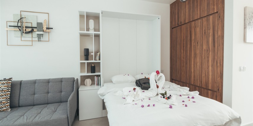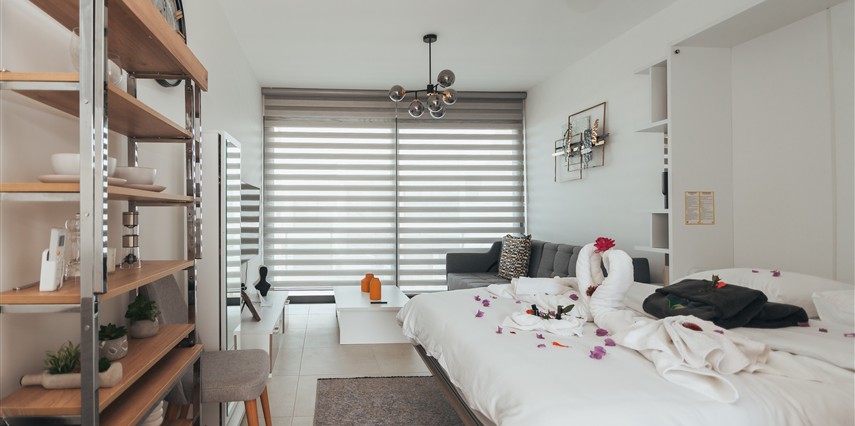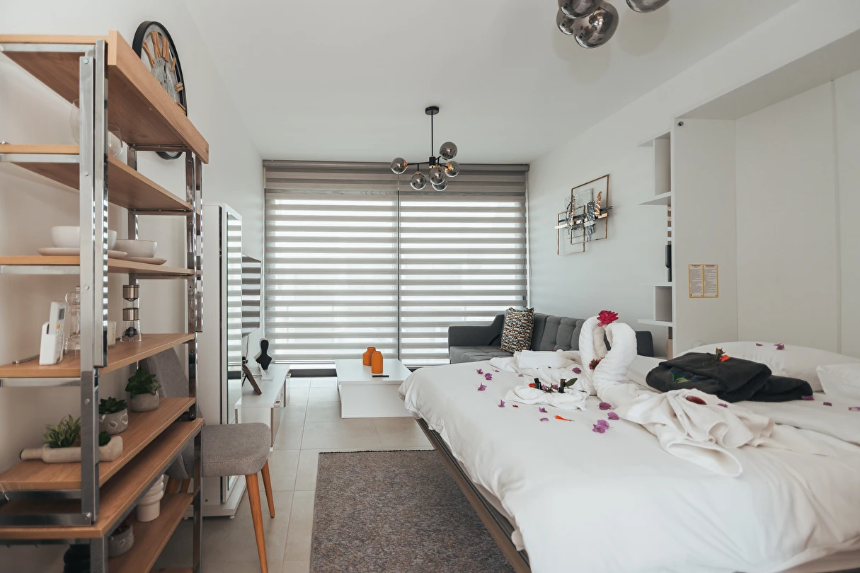 *Fonksiyonel tasarım: açık plan mutfak, oturma ve yatak alanı bir arada