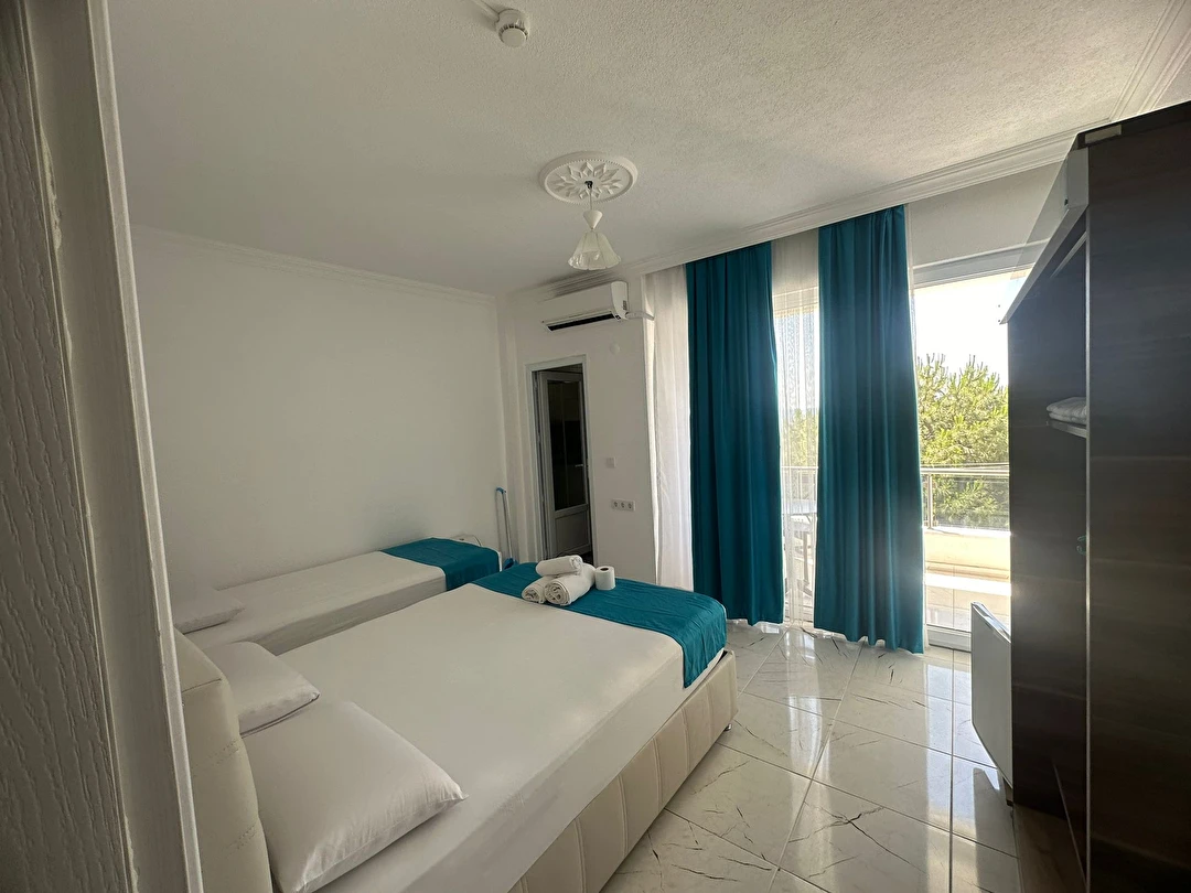 2 ve 3 kişilik konaklama birimleri olan Pegasus Motel aile odalarını tercih edebilirsiniz. Böylece tüm aile fertlerinin konforunu sağlayacak bir seçim yapabilirsiniz. Klimalı olan bu odalarda uydu televizyon, dolap, temiz nevresimler gibi eşya ve ürünler bulunuyor. Ayrıca kendine ait balkonu olması da konukların sevdikleri tesis özellikleri arasında.