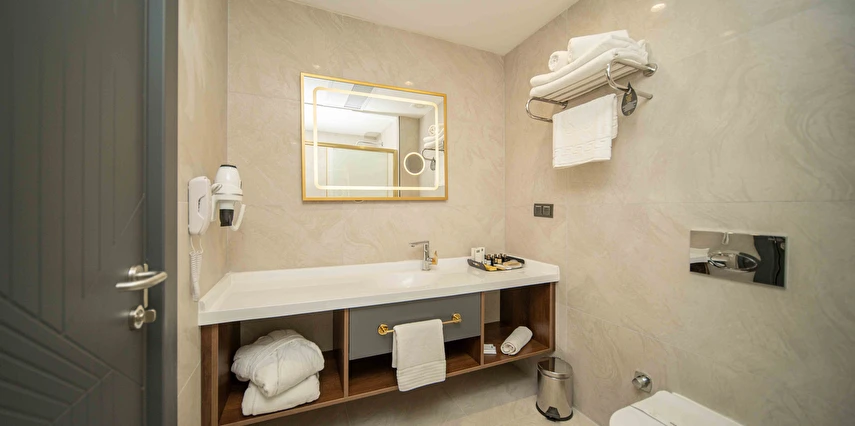 Spa & Wellness merkezimiz toplamda 240m²'dir. 5 adet masaj odası, dinlenme alanı, 1 adet geleneksel Türk hamamı, sauna, buhar odası ve stres azaltan vücuttaki oksijeni yükselten tuz odası, son sistem teknoloji ile ısıtılmış kapalı yetişkin ve çocuk havuzu sizler için tasarlanmıştır. Bu alanda konuklarımızın beden ve zihinleri Uzakdoğulu özel eğitimli çalışanlarımızın maharetli elleri ile huzur bulacaktır.