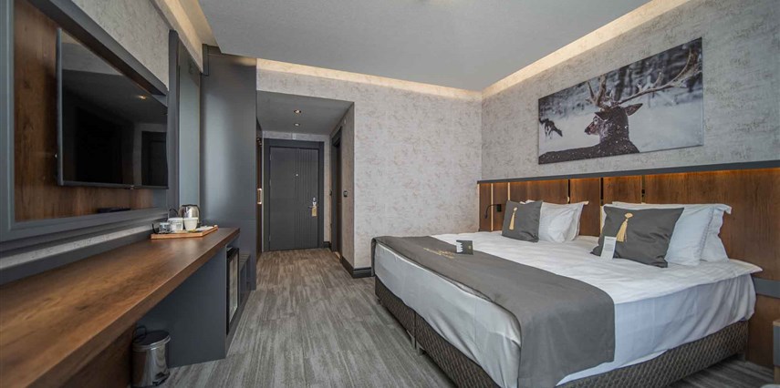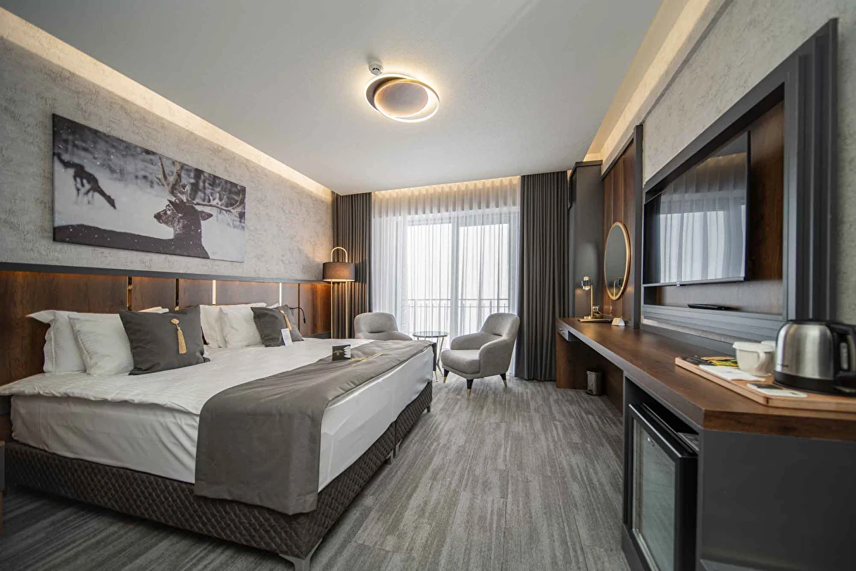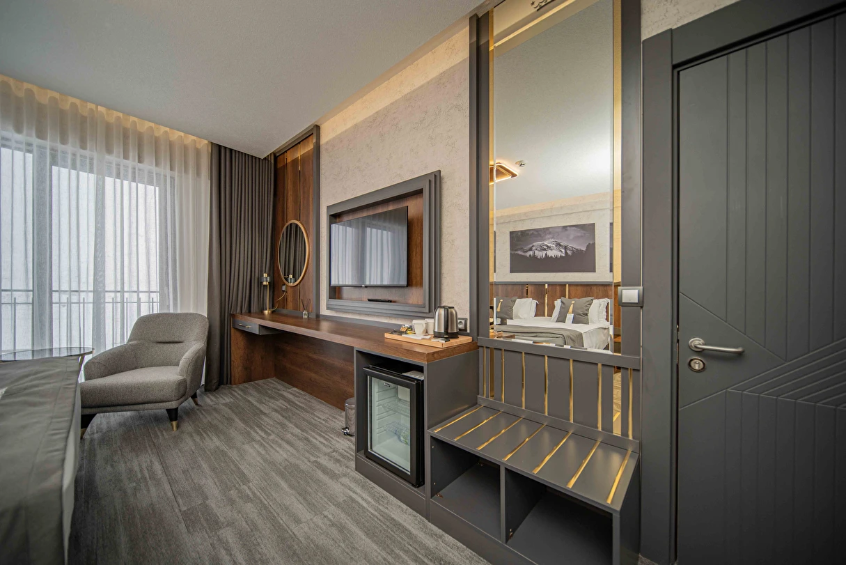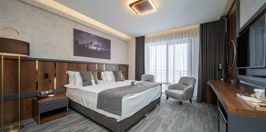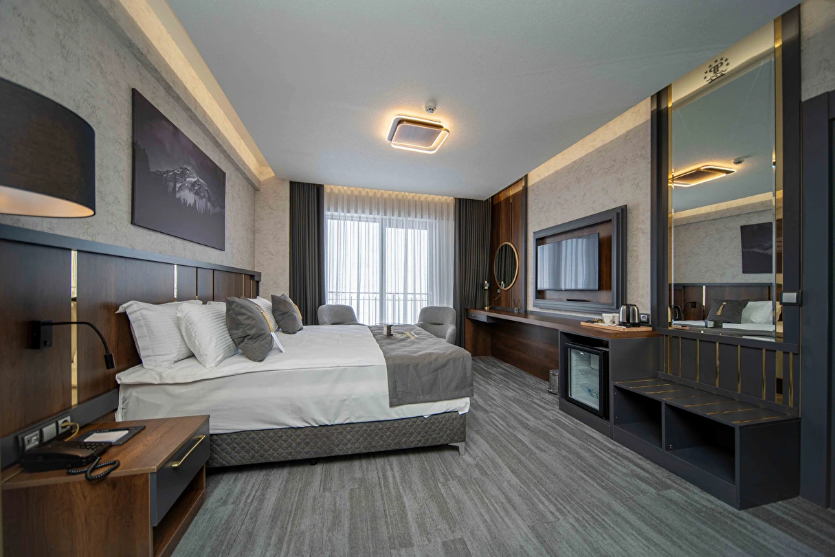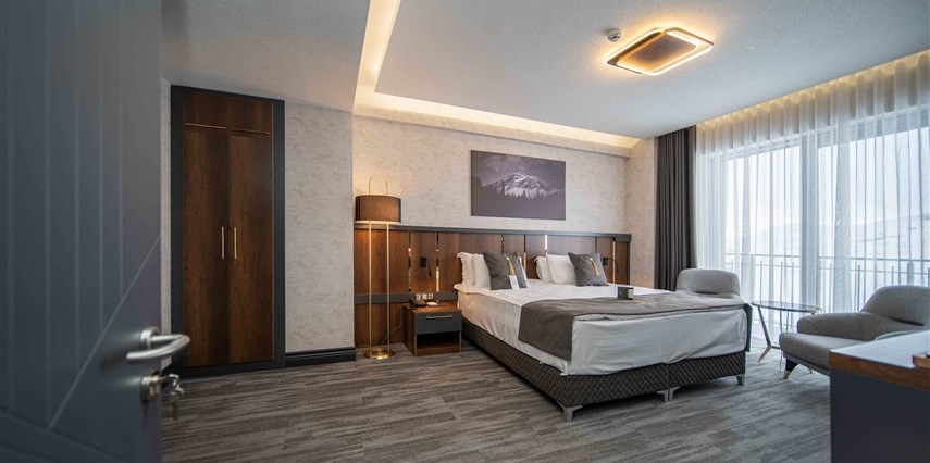 Daha Fazla GösterErciyes'in zirvesinde üstün olanaklarımızla tatilinizi doruklarda yaşayın. 100 kişi kapasiteli restaurantımızda sabah kahvaltısı ve akşam yemekleri açık büfe olarak, öğle yemekleri ala-carte servis, şakayık lounge bar coffe break hizmet vermektedir. Erciyes Dağı'nın ve gölün huzur veren manzarası eşliğinde sıcacık atmosferi ve modern tasarımı ile şömine başında konukları unutulmayacak anılara davet ediyor.