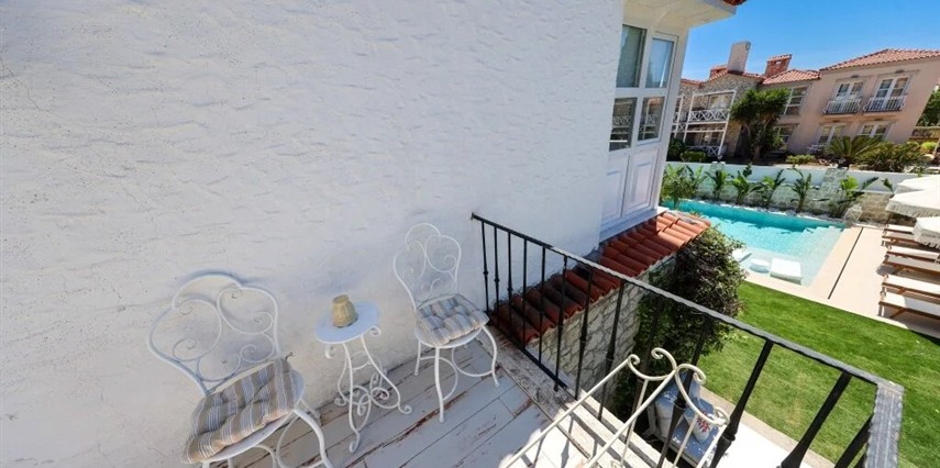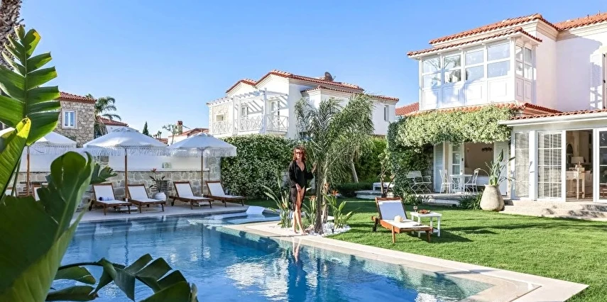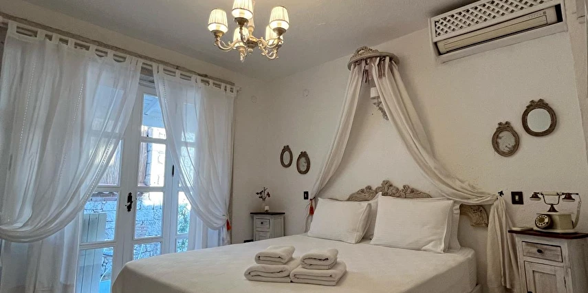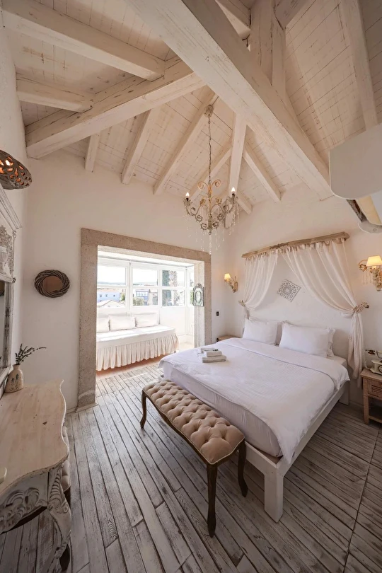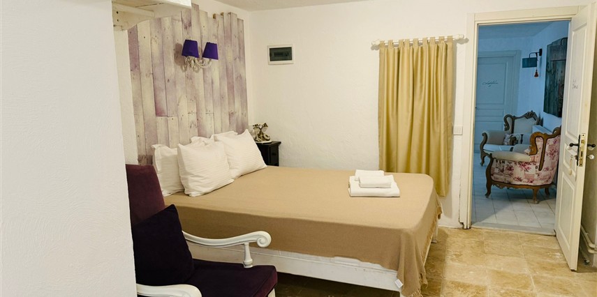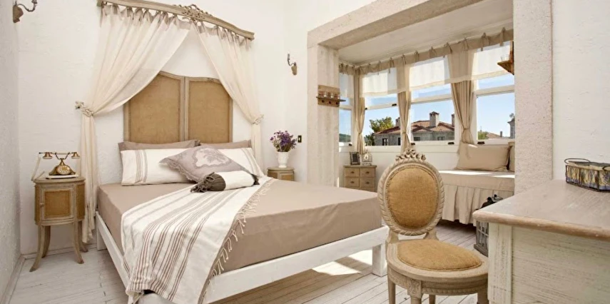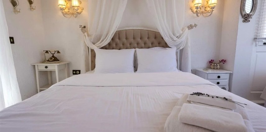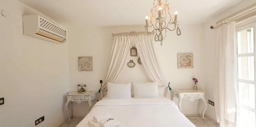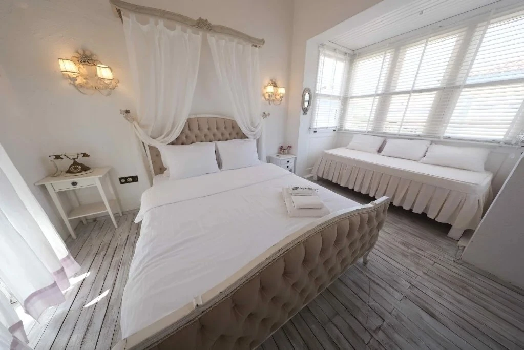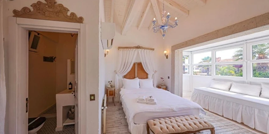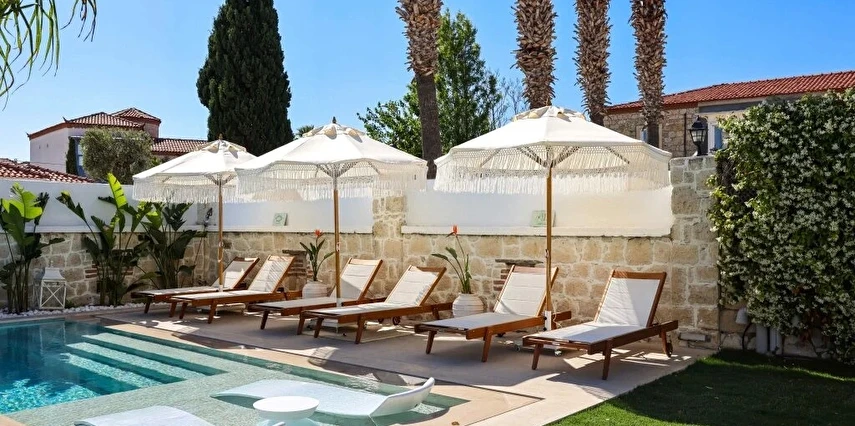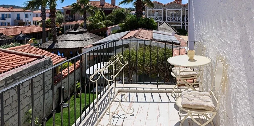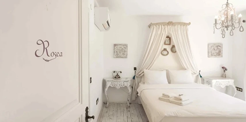 Otelde her şey incelikle düşünüldü. Bohem detaylarla süslenen zarif dekorasyon, ev sıcaklığındaki odalar, güne Ege’nin taze ürünleriyle başlayan kahvaltılar… Burada konuk değil, bir dost gibi ağırlanırsınız.