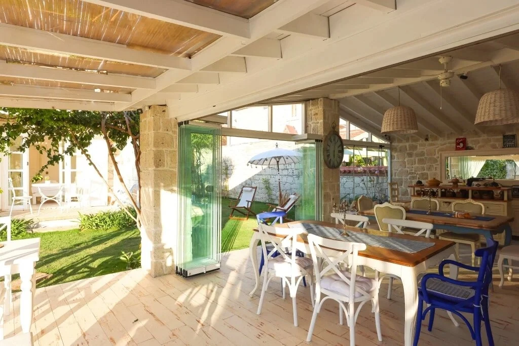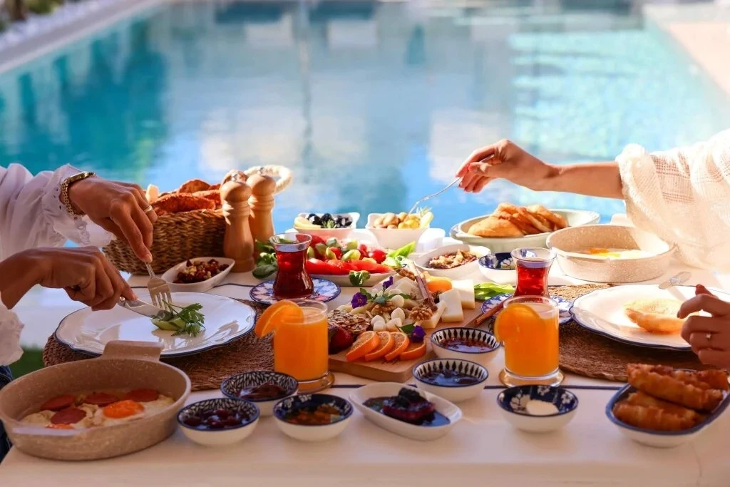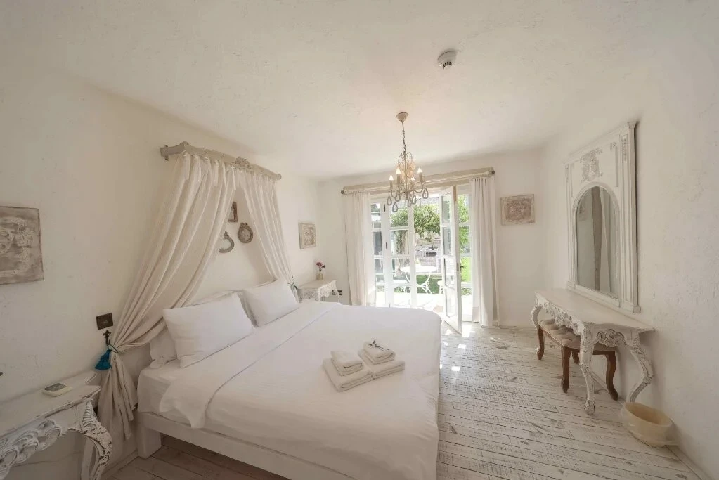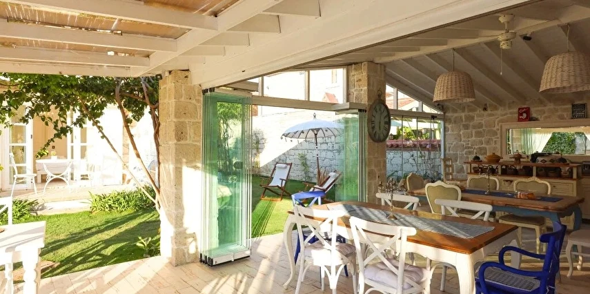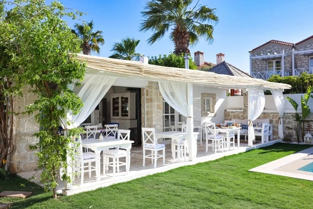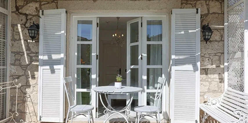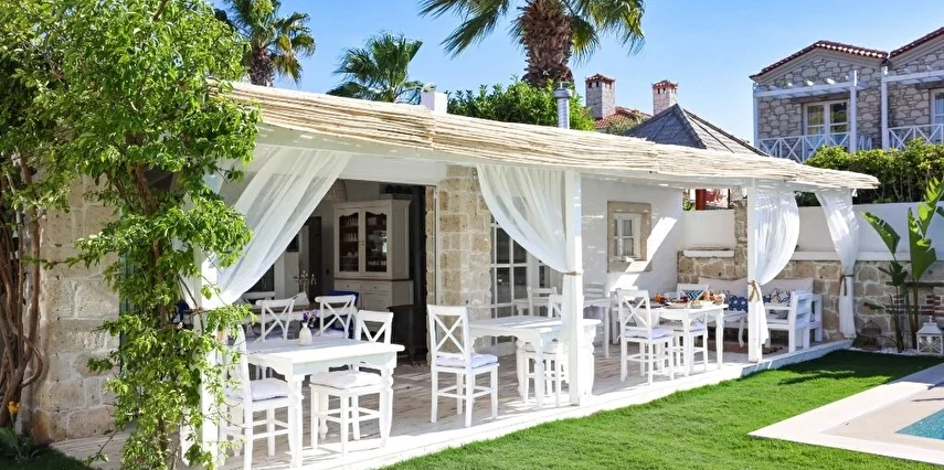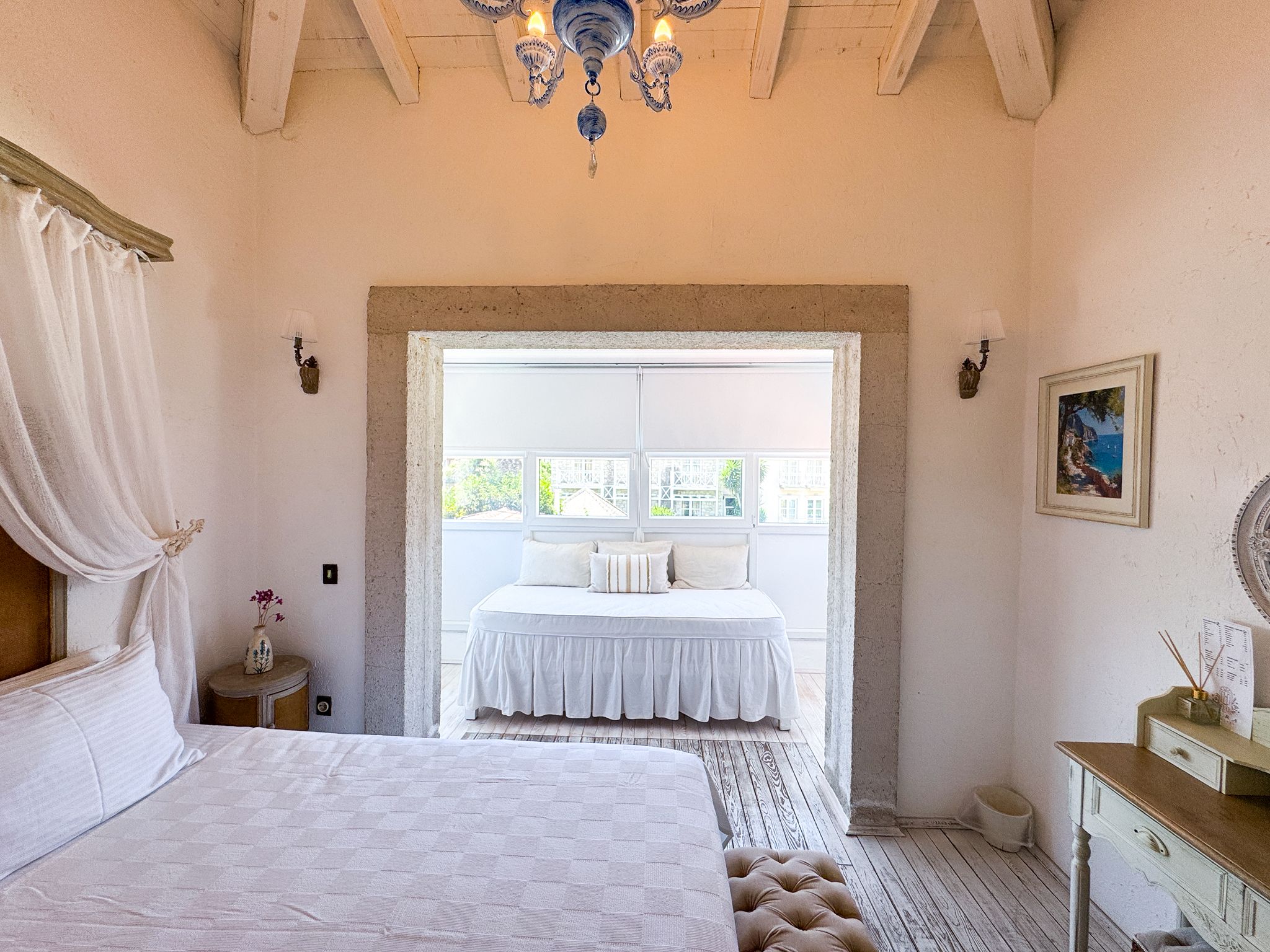 Otelde her şey incelikle düşünüldü. Bohem detaylarla süslenen zarif dekorasyon, ev sıcaklığındaki odalar, güne Ege’nin taze ürünleriyle başlayan kahvaltılar… Burada konuk değil, bir dost gibi ağırlanırsınız.