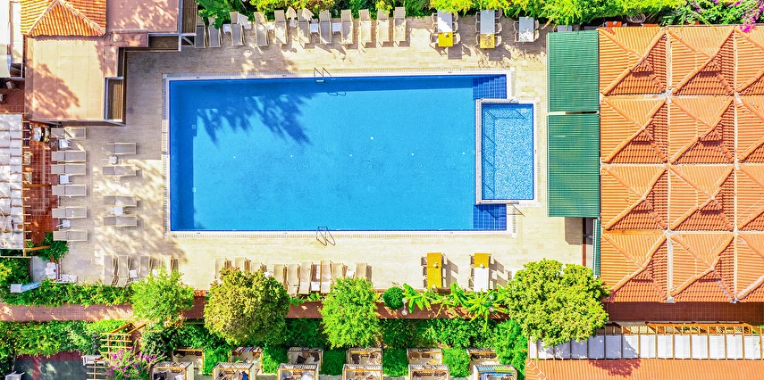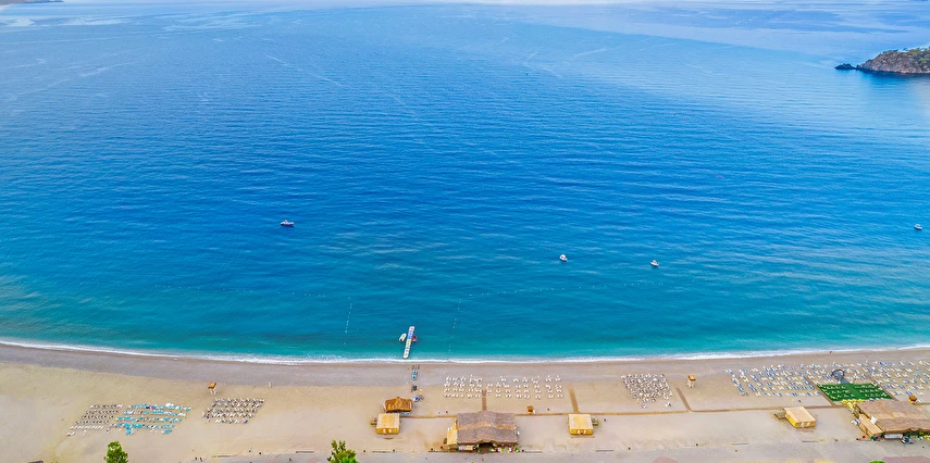 Plajda şezlong, şemsiye ve minder ücretli, havuz kenarında şezlong, şemsiye ve minder ücretsizdir.