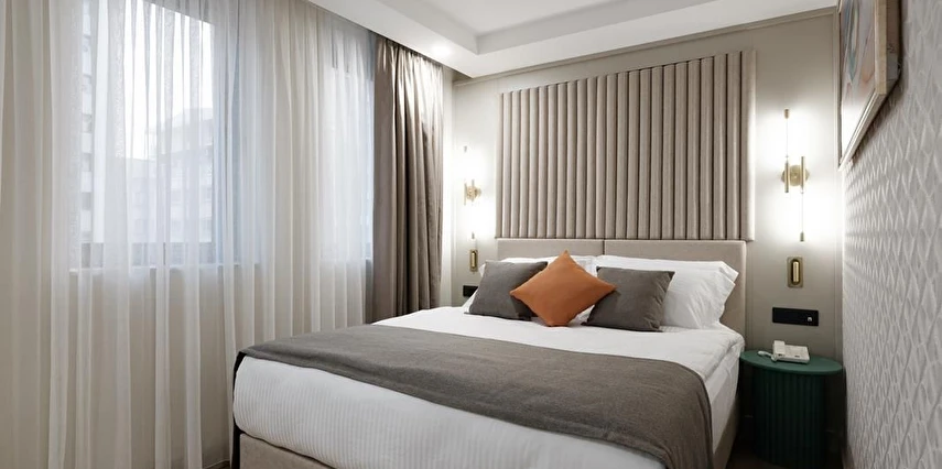 Daha Fazla GösterBazı mekanlar tarihe tanıklık ettiği gibi, yeni bir tarihin de başlangıcı niteliği taşır. İzmir’in en merkezi yerlerinden ve iş dünyasının kalbinin attığı Çankaya semtinde atıl ve kaderine terk edilmiş durumda olan binamızı yeniden kazanmak ve hizmet alanımıza dönüştürebilmek adına güzel bir hayal kurduk. Bu hayalin gerçeğe dönüşebilmesi için; alanında en iyi olan uzmanlar ve mimarlardan oluşan büyük bir ekiple yola çıktık. Çünkü insan yaşamı bizim için çok değerli. Bu nedenle yaşamımızın gerçeği olan deprem konusunda inanılmaz iyileştirmeler yaptık. Binamızı baştan aşağı her anlamda yeniledik ve güçlendirdik. Otelin inşaatında kullanılan her bir materyal özel olarak seçildi ve ülkenin belirli noktalarından alanında en iyi markaların bir araya getirilmesiyle oluşturuldu. Ekibimizle birlikte, mekanımızı amacımıza en uygun biçime dönüştürebilmek ve hayalini kurduğumuz detayları gerçeğe dönüştürüp ortaya çıkartmak, mekanımızı, kendine has bir kimliğe büründürmek en büyük hayalimizdi. Bu hayalimiz gerçek oldu. Böylece İzmir'in kalbinde, Çankaya'nın merkezi yerinde kentin ikonik oteli olan “Perla Pura”doğdu.
