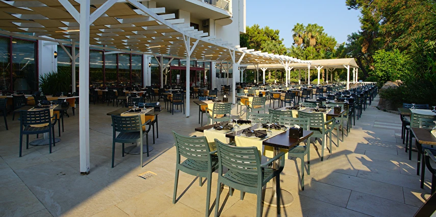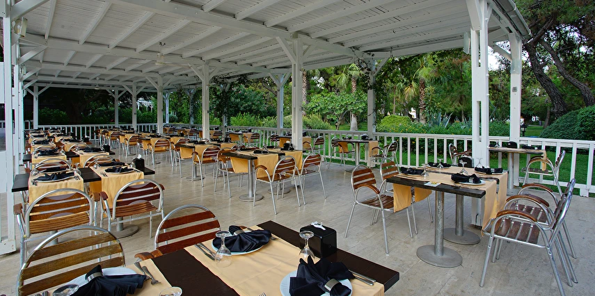 Türk A la Carte Restoran (mevsim şartlarına bağlı hizmet verir)(19:00 ile 21:00 saatleri arasında)(rezervasyonlu - ücretsiz)(Türk yemek kültürünü ve bu yemeklerin sunulmasını kapsayan rezervasyonlu A la Carté restauranttır. 15 Haziran - 15 Eylül tarihleri arasında mevsim koşullarına bağlı hizmet verir. Minimum 7 gecelik konaklama süresi boyunca 1 kez kullanılabilir. 7 gece altı konaklamalar için ücretlidir.). Grup rezervasyonu alınmamaktadır.