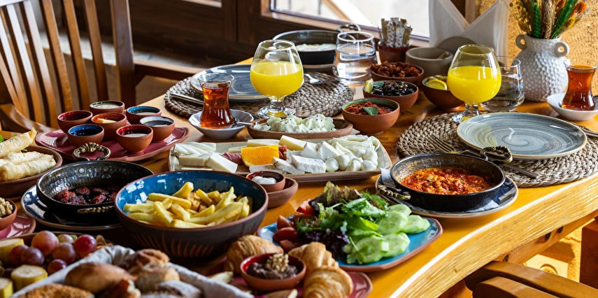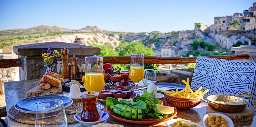 Güvercinlik Vadisi ve Erciyes Dağı panoraması eşliğinde yöresel ve uluslararası tatlar servis eder. Sabah ise hem açık büfe hem de serpme kahvaltı seçenekleriyle güne enerjik bir başlangıç yapabilirsiniz.
