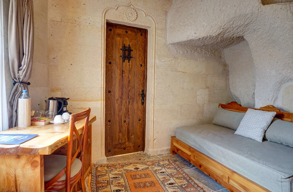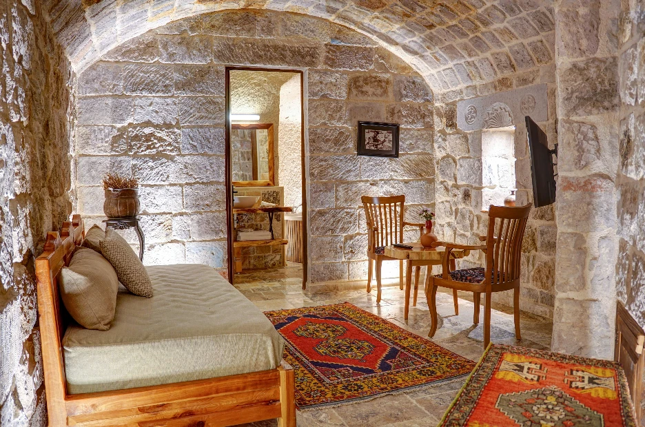 Petra Inn Cappadocia, Kapadokya’nın kalbi Uçhisar’da yer alan sıcak ve şık bir butik oteldir. Tarihi Çarhacı Mustafa Efendi Konağı merkez alınarak titizlikle restore edilmiş taş ve mağara odalarıyla, geçmişin mistik dokusunu günümüz konforuyla harmanlar.