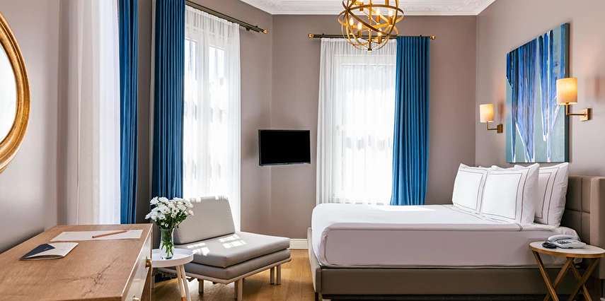 Daha Fazla Gösterİstanbul’un en merkezi noktalarından İstiklal Caddesi’ne birkaç dakikalık yürüyüş mesafesindeki Petros Hotel, butik konsepti ile hizmet veriyor. geçmişten izler taşıyan mimarisi ve şık dekorasyonu ile misafirlerin kendini evinde hissetmesini sağlıyor.