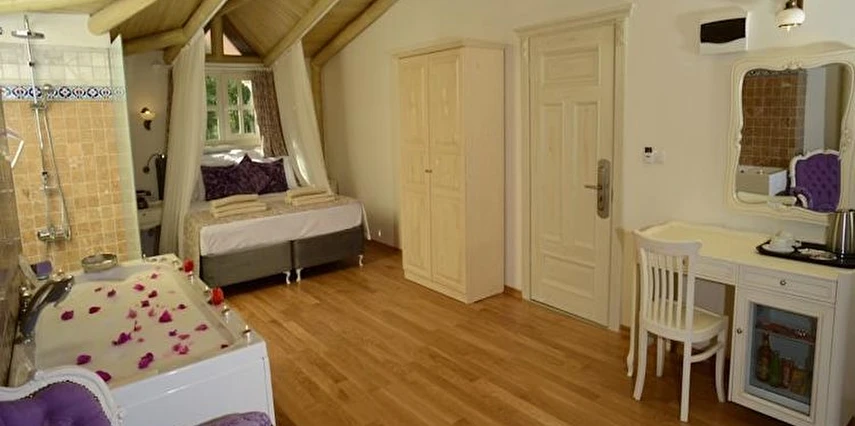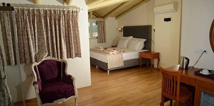 Özenle dekore edilmiş konforlu odalarında; klima, TV, ücretsiz Wi-Fi ve modern banyo olanakları bulunmaktadır. Şık ve sade detaylarla tasarlanan odalar, misafirlerin kendilerini rahat ve özel hissetmeleri için tüm ihtiyaçlar düşünülerek hazırlanmıştır. Temizliği ve düzeniyle öne çıkan tesis, konuklarına ev konforunda bir konaklama imkânı sağlar.