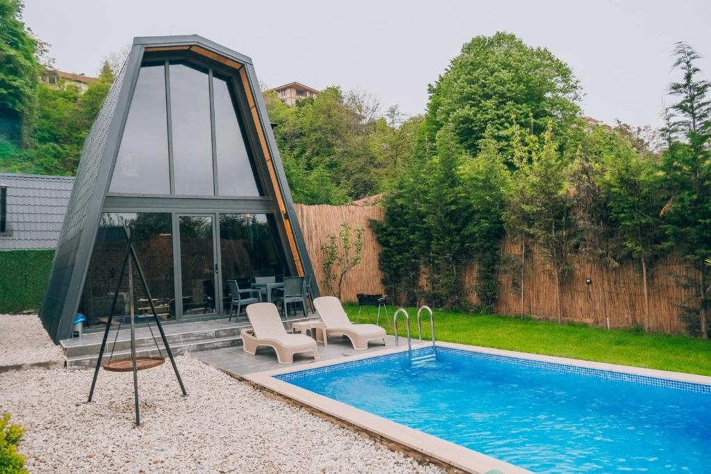 Daha Fazla GösterPierre Ror Sapanca, birbirinden farklı özel havuzlu bungalovları ile misafirlerine hizmet vermektir. 2020 yılında Sapanca' da açılan Pierre Ror Sapanca yeni nesil tatil anlayışla Sapanca'da doğanın tam kalbinde yerini almakta olup, eşsiz doğa manzarasıyla müstakil ve kişiye özel havuzları, şömineli, jakuzili ve geniş bahçeli 6 adet bungalov evi 1 adet müstakil özel 2+1 villası ile hizmet vermektedir.
