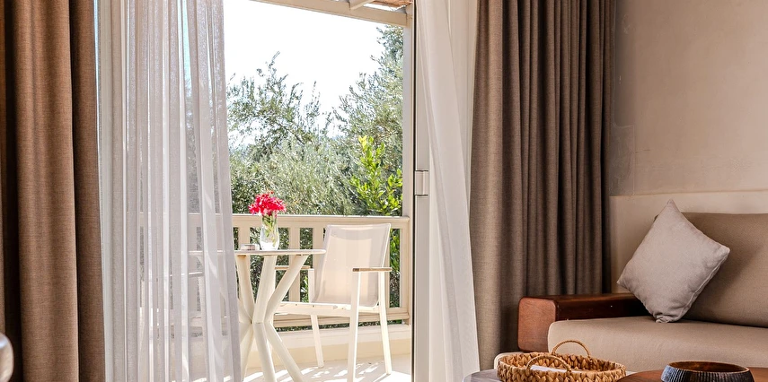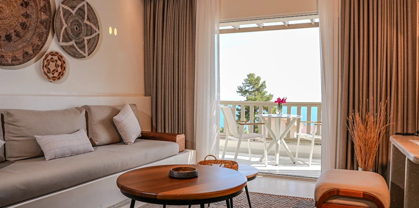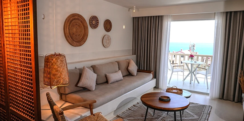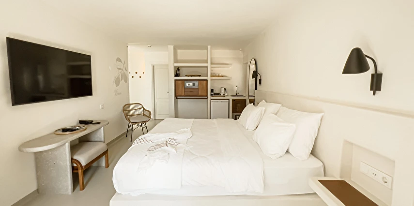 Pilos Deluxe Hotel süit odalarının yanı sıra deluxe, dubleks ve stüdyo olarak adlandırılan konaklama birimlerine sahip. İşletmedeki pek çok birimde klima, televizyon ve kablosuz internet gibi detaylar bulunuyor. Aynı şekilde bazı süit odalarda mini mutfak da yer alıyor.