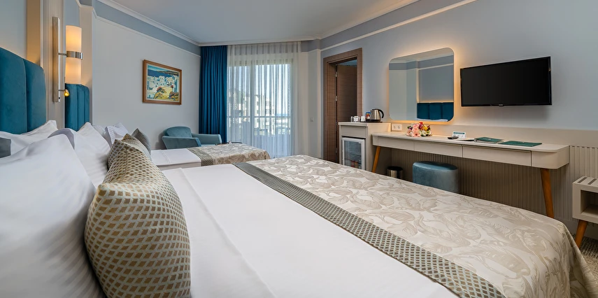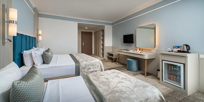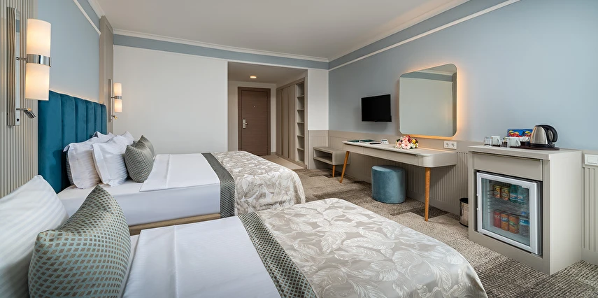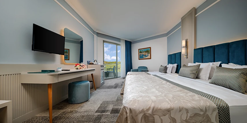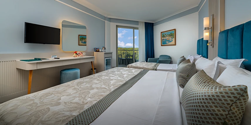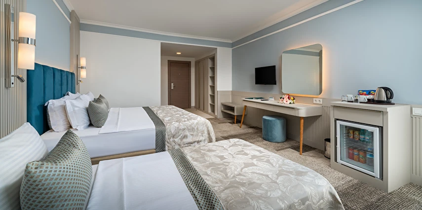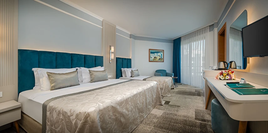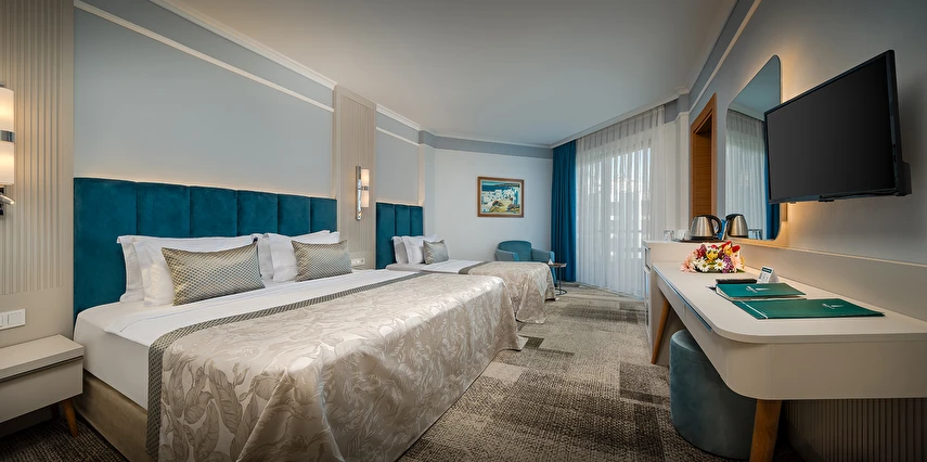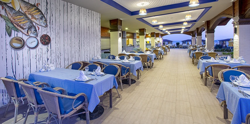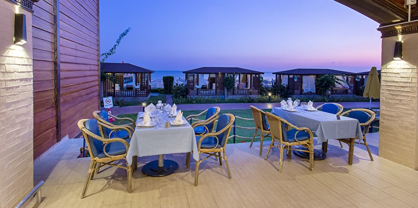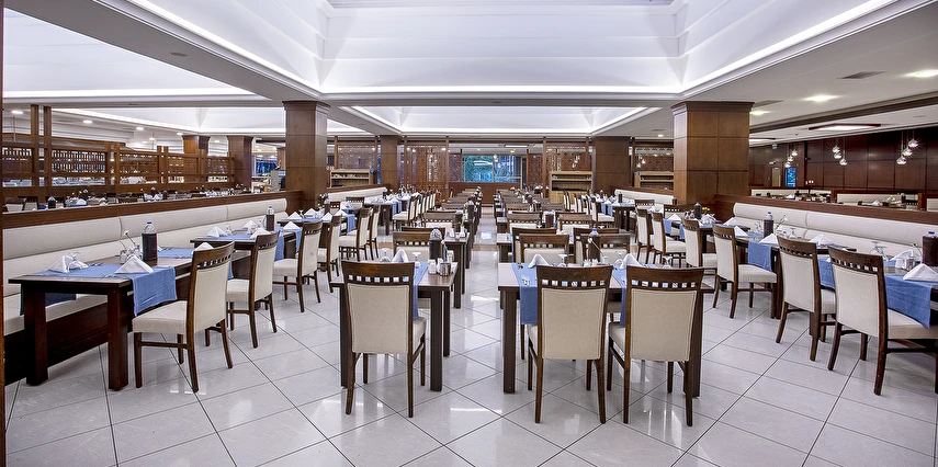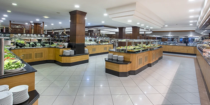 Sabah kahvaltısı, öğle ve akşam yemekleri açık büfe olup tesisin belirlemiş olduğu markalar dahilinde yerli alkollü ve alkolsüz içecekler 24 saat ücretsizdir.