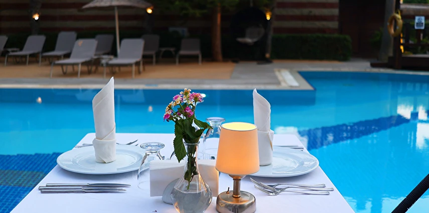 Yarım Pansiyon konaklamalarda; sabah kahvaltısı ve akşam yemeği dışında alınacak yiyecekler ücretli. Tesis genelinde alınan tüm içecekler ücretli. Tesis yoğunluğuna göre akşam yemeği set menü şeklinde verilebilir.
