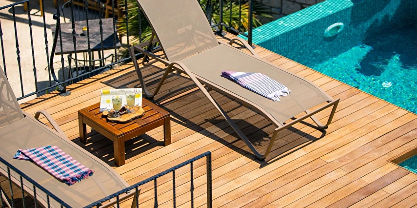 Bahçede içeceğinizi yudumlarken keyif yapabilir, havuz başında güneşlenebilir ya da masaj özelliği bulunan havuzumuzda dinlenebilirsiniz.