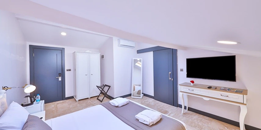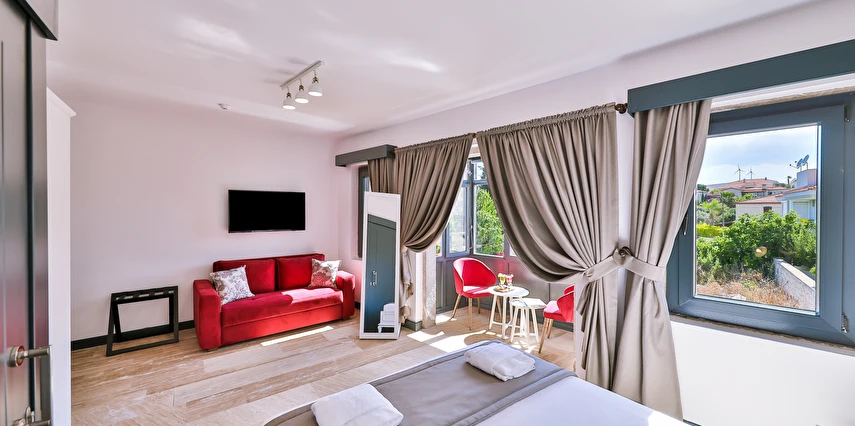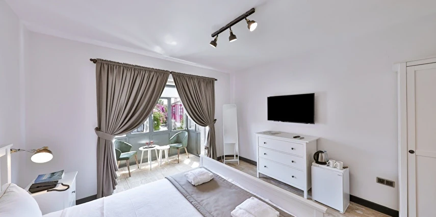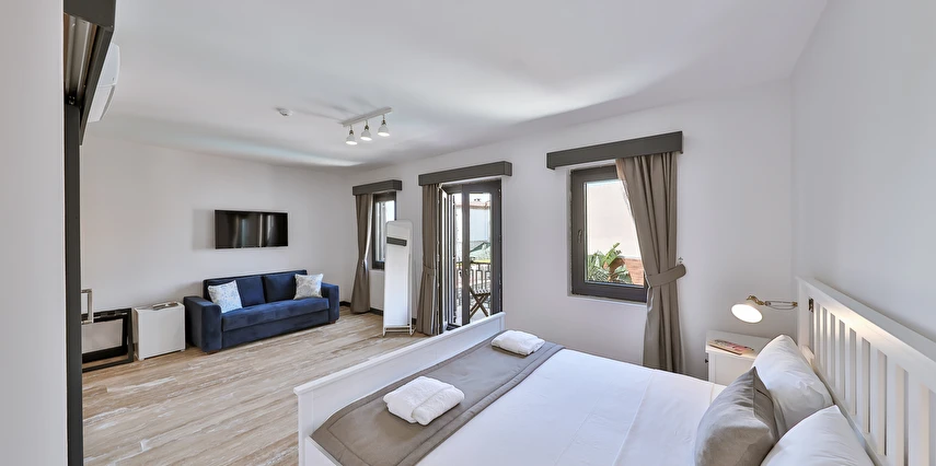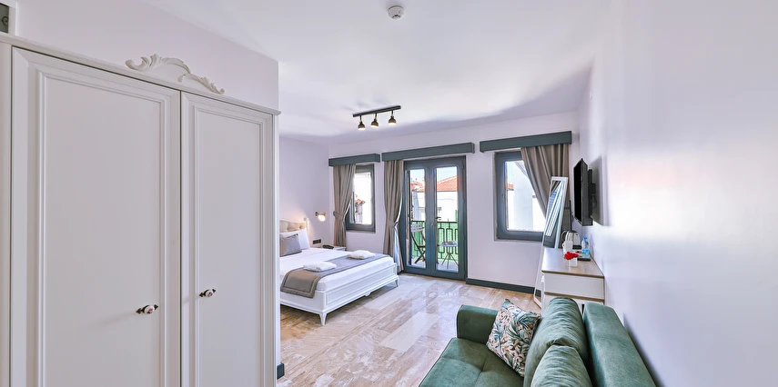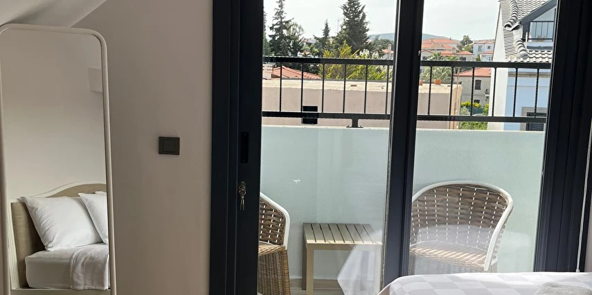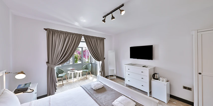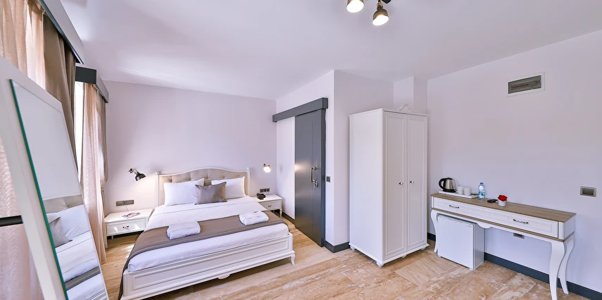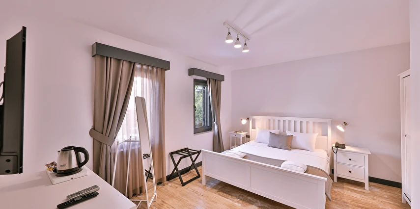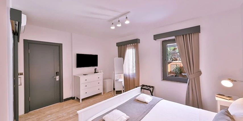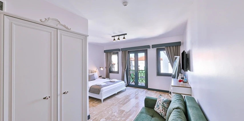 İki ayrı binadan oluşan butik otel geniş, aydınlık ve ferah odaları ile birçok Alaçatı otelinden ayıran önemli faktörlerdir.