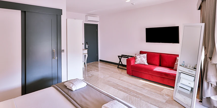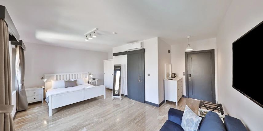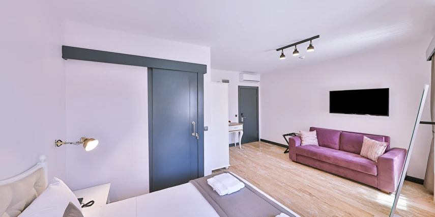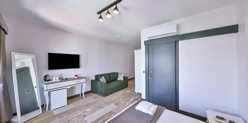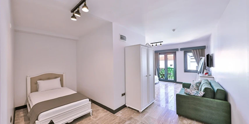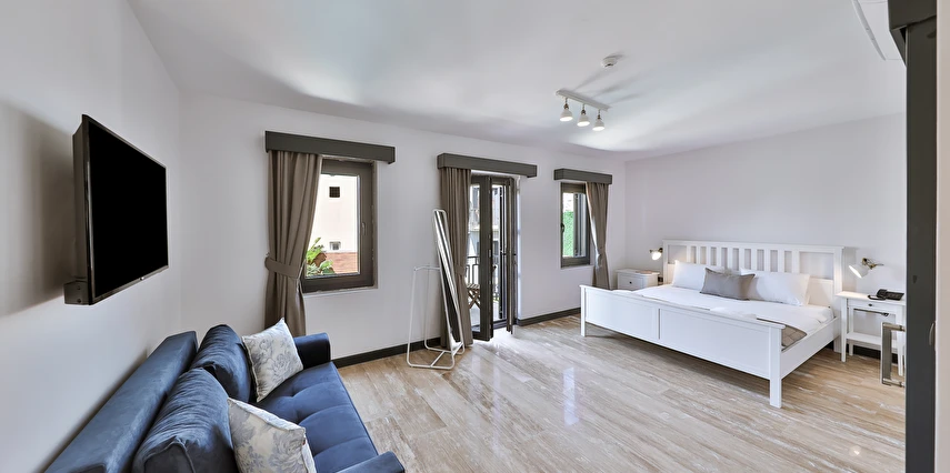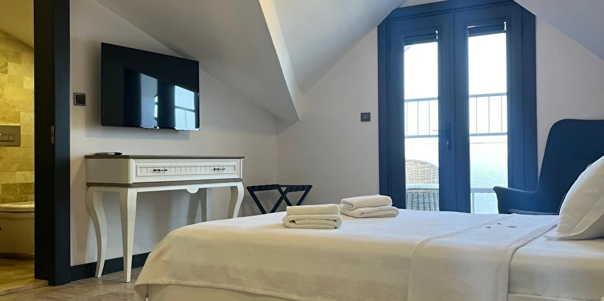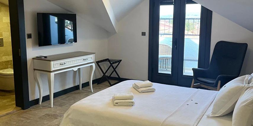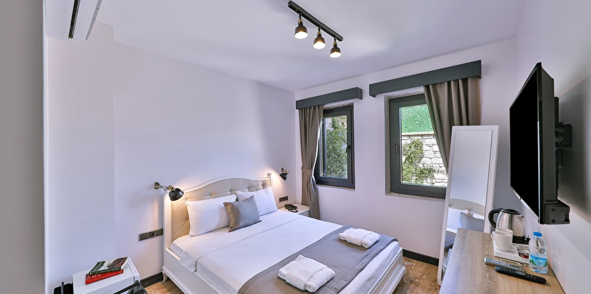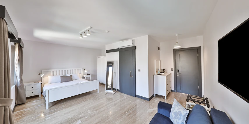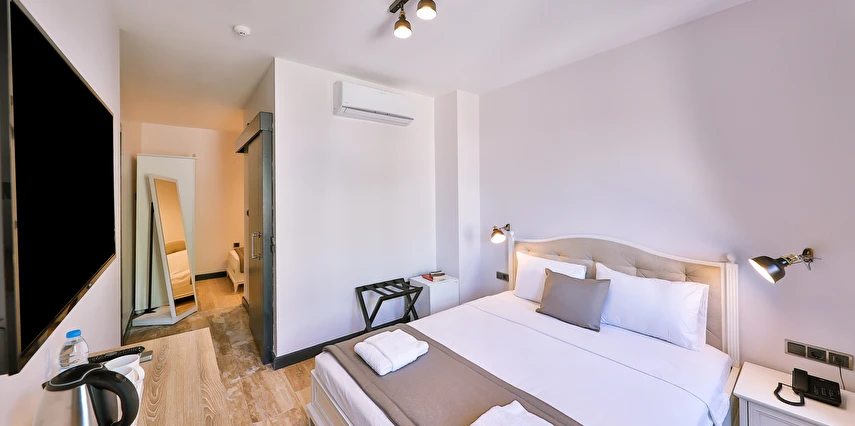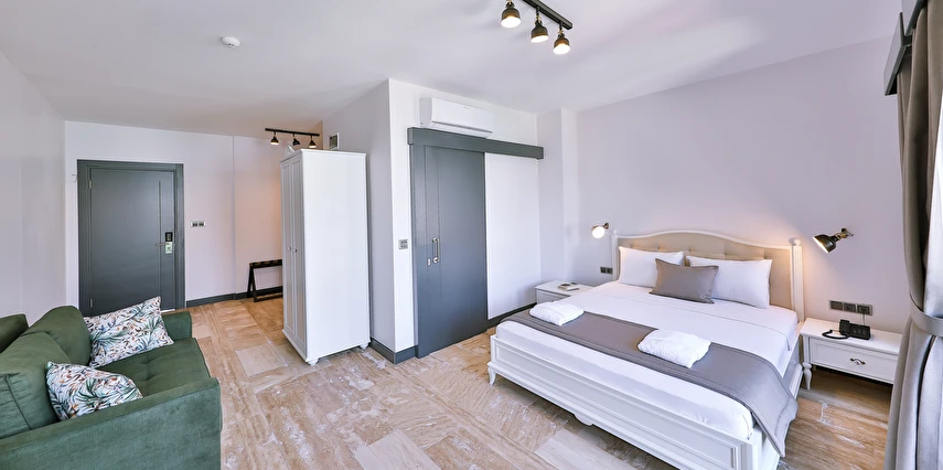 İki ayrı binadan oluşan butik otel geniş, aydınlık ve ferah odaları ile birçok Alaçatı otelinden ayıran önemli faktörlerdir.