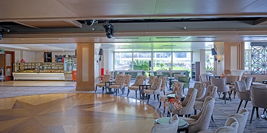 Palm Bar (12:30 ile 14:00 ve 18:30 ile 21:00 saatleri arasında)(Otelin belirlediği yerli yabancı alkollü ve alkolsüz , sıcak ve soğuk içecekler Ögle ve akşam yemeği esnasında hizmetinizdedir)