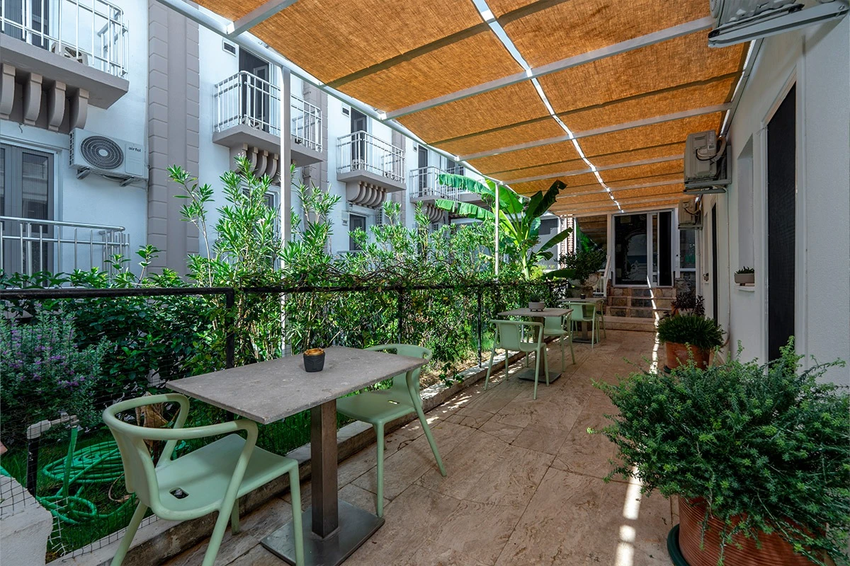 Bodrum’un kalbinde, şirin bir ara sokakta yer alan Porto Sol Hotel, şehir merkezinin ruhunu konfor ve huzurla buluşturuyor. Marina’ya, Bodrum Çarşısı’na ve tarihi dokusuyla büyüleyen gezilecek yerlere sadece birkaç adım uzaklıktayız. Misafirlerimize sunduğumuz samimi atmosfer, Bodrum’un sıcaklığını hissettirirken, modern ve rahat tasarıma sahip odalarımız tatilinizi daha keyifli kılar. İster kısa bir kaçamak, ister uzun bir konaklama için olsun; Porto Sol, Bodrum’un hareketli yaşamına yakın olmanın avantajını sunar. Burada, günün her anında Bodrum’un enerjisini hissedebilir, denize ve eğlenceye kolayca ulaşabilir, ardından kendi evinizdeymiş gibi huzurlu bir mola verebilirsiniz.