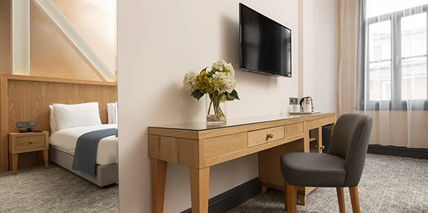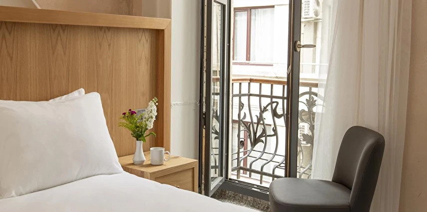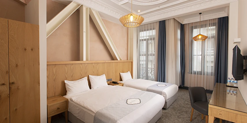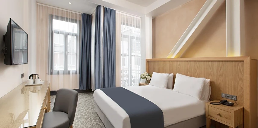 Daha Fazla GösterTaksim bölgesindeki ünlü İstiklal Caddesi'nde yer alan Premist Hotels Taksim modern, sessiz ve rahat konaklama birimleri sunmaktadır.Premist Hotels Taksim’in klimalı odalarında gardırop, düz ekran kablo TV, minibar ve elektrikli su ısıtıcısı vardır. Bazı odalarda balkon da mevcuttur.Otel bünyesindeki restoranda kahvaltı servis edilmektedir. Tesis genelinde Wi-Fi erişimi ücretsizdir.Otelin güler yüzlü personeli günün her saatinde hizmetinizdedir.Çevrede bulunan sanat galerilerine, müzelere, mağazalara ve tarihi mekanlara yürüyerek ulaşabilirsiniz. Madame Tussauds Müzesi sadece 200 metre, Demirören Alışveriş Merkezi ise Premist Hotels Taksim'e 240 metre uzaklıktadır. Masumiyet Müzesi ve Orhan Kemal Müzesi 650 metre mesafededir. Ünlü Galata Kulesi ise tesise 1,3 km uzaklıkta yer alır.Atatürk Havaalanı 25 km mesafededir. Otelden halka açık havaalanı servisi durağına yürüyerek 5 dakikada ulaşılabilir.