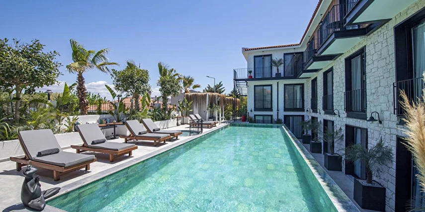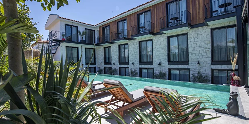 Alaçatı Çamlık Mevkii üzerinde yepyeni odaları, yüzme havuzu ve Alaçatı'ya yakınlığıyla size muhteşem dinlenme imkanı veren ve Alaçatı taş ev mimarisine göre yapılan otelimiz siz misafirlerimizin beğenisine sunulmuştur.