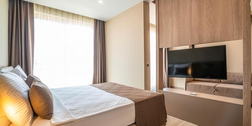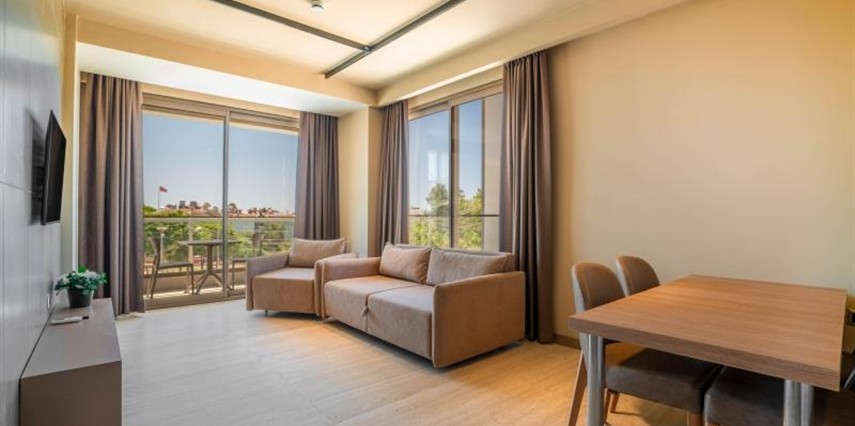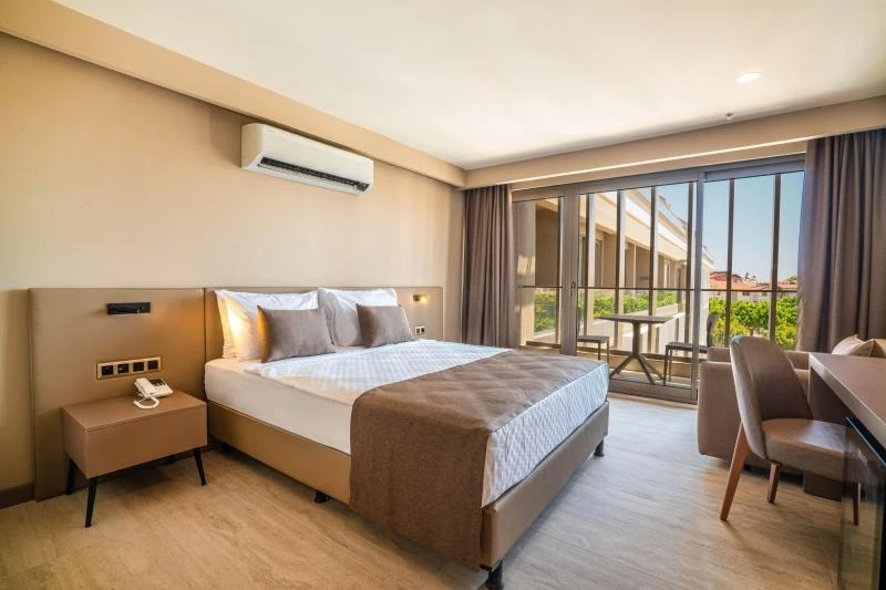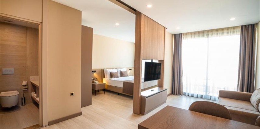 Otelin ferah ve konforlu suit odaları; modern mobilyalar, rahat yataklar ve ihtiyaç duyulan tüm olanaklar düşünülerek tasarlanmıştır. Geniş yaşam alanları sayesinde özellikle uzun süreli konaklamalar için de uygundur. Misafirler, odalarında ev rahatlığını yaşarken aynı zamanda otelin sunduğu hizmetlerle tatilin keyfini çıkarabilir.