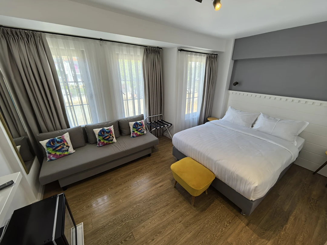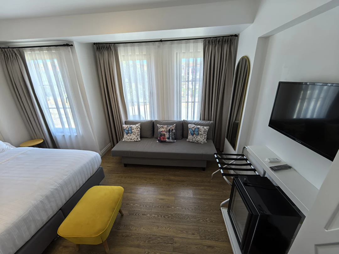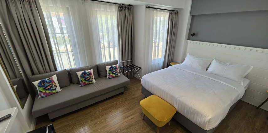 Şehirde yüklendiğiniz bütün kaygılardan uzak kalabileceğiniz, masmavi suların kucağında size huzuru ve keyfi cömertçe sunan Bozcaada'nın kalbinde konforlu bir tatilin adıdır QonuQ Bozcaada. Feribottan indikten yalnızca 5 dk sonra sizlere hak ettiğiniz iyi bir tatilin kapıları açılır. Sadelik ve titizlikle hazırlanmış tertemiz odaları, zevkle döşenmiş banyoları ile kendinizi evinizin rahatlığında hissedersiniz. Arka bahçemizde üzüm bağları manazarası eşliğinde mutlulukla ilgisi kesin olan, el yapımı börekler, pişiler, reçeller ve çok daha fazlası ile bezenmiş nefis bir kahvaltıyla güne başlarken, isterseniz patika yollardan yürüyüş yaparak doğanın sesini dinleyebileceğiniz bir manzaranın ortasında tatilinizi keyfe çevirebilirsiniz. Merkeze hem çok yakın olup, hem bu sakinliği yaşayabileceğiniz özel bir konumdayız. Bozcaada'nın herbiri ayrı güzellikte olan eşsiz koylarına ise sadece 5 ila 10 dk içerisinde kendinizi bırakıp tazelenebilirsiniz. 25 yıllık turizm tecrübemiz ve yepyeni markamızla, amatör heyecanımızı hiç kaybetmeden sunduğumuz hizmet kalitemizi QonuQ Bozcaada farkı ile siz de yaşamalısınız.
