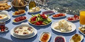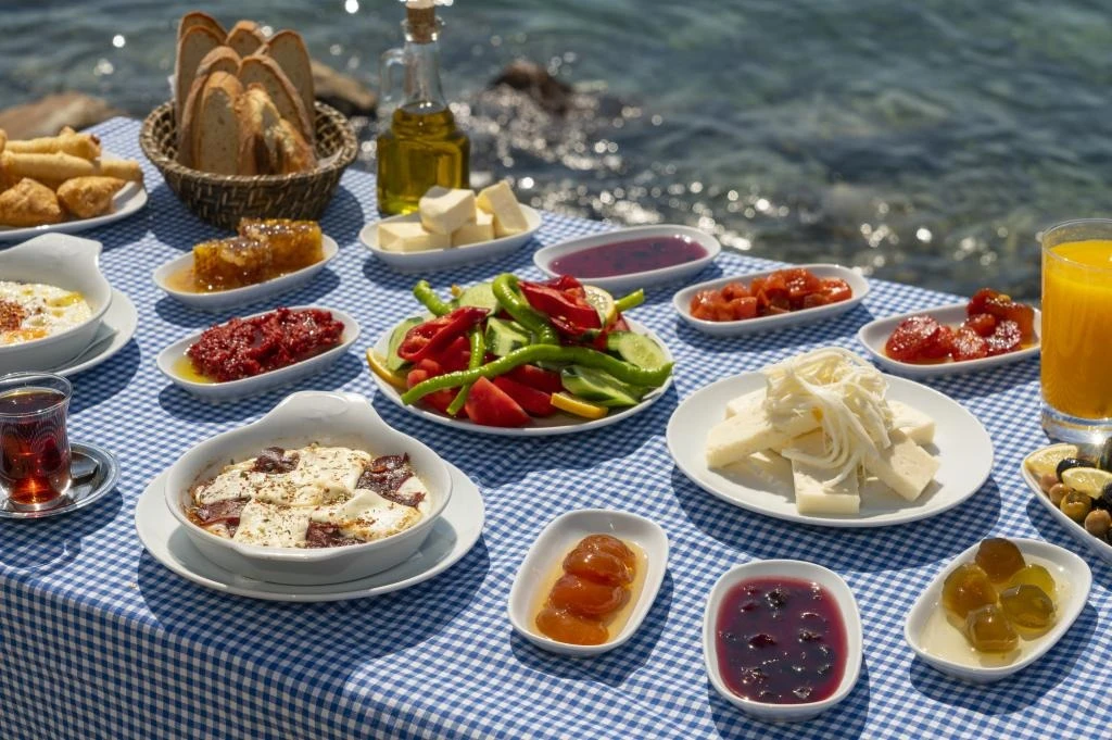 Kahvaltılar, denize sıfır Vasilaki Restoran'da veriliyor.