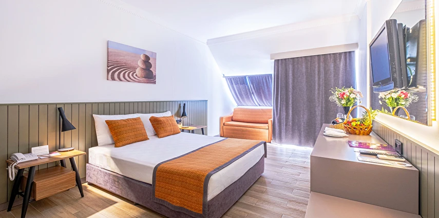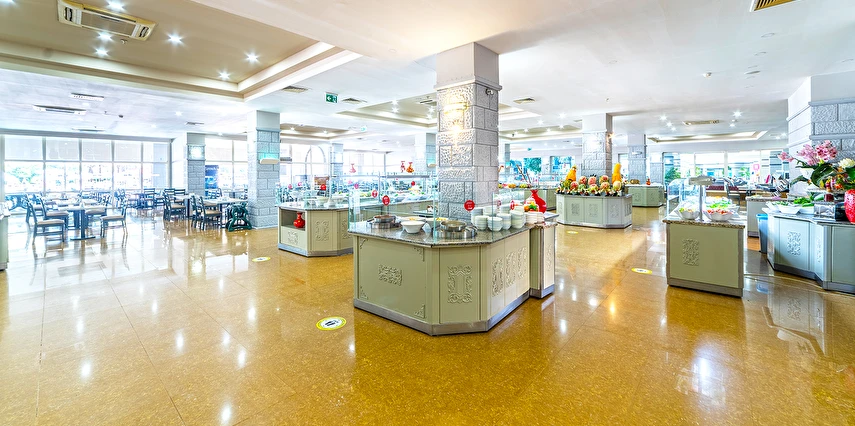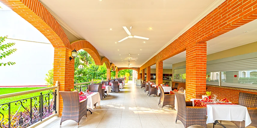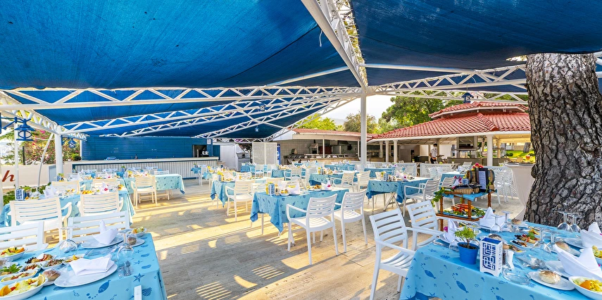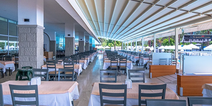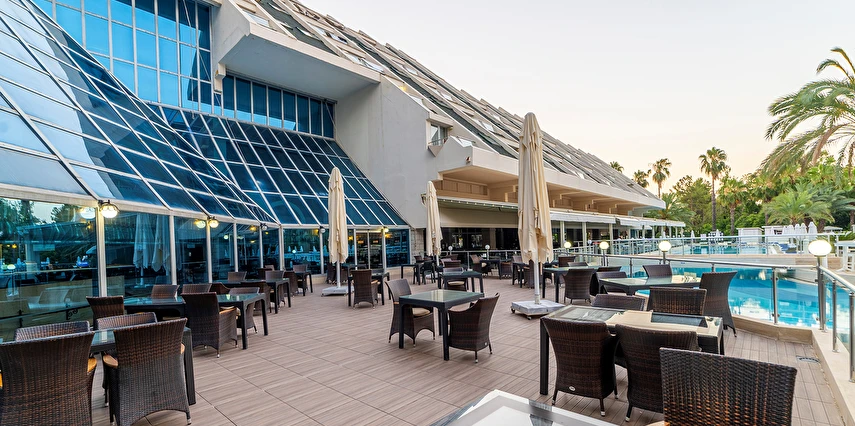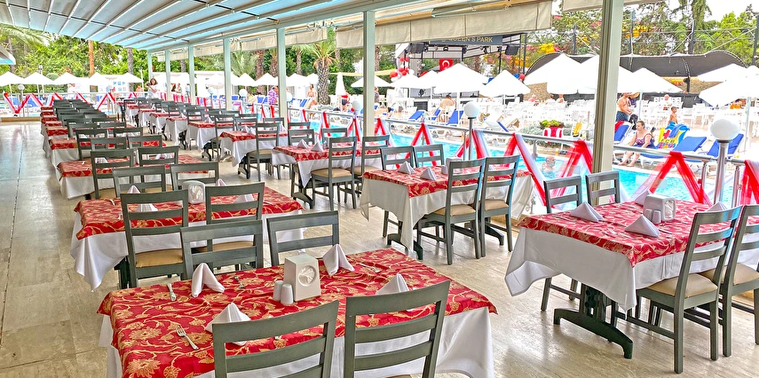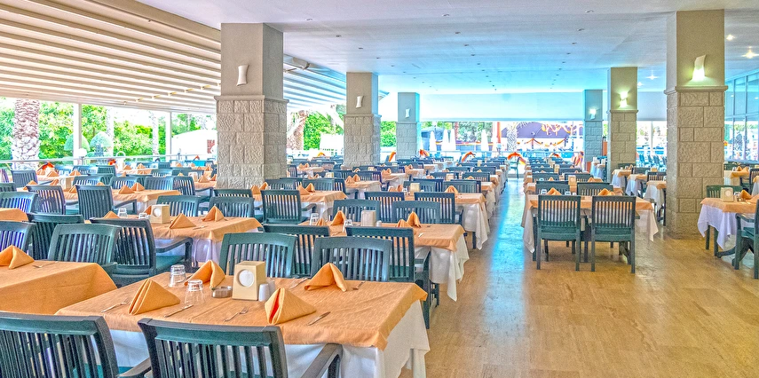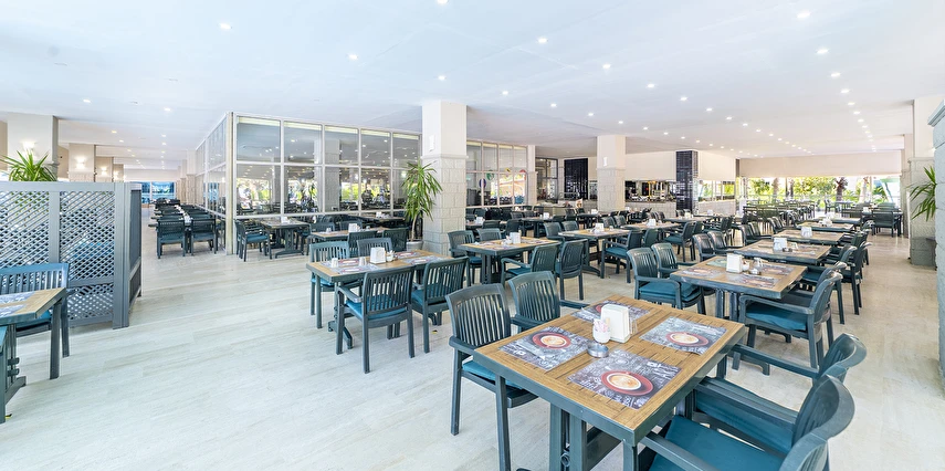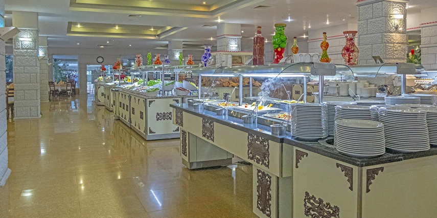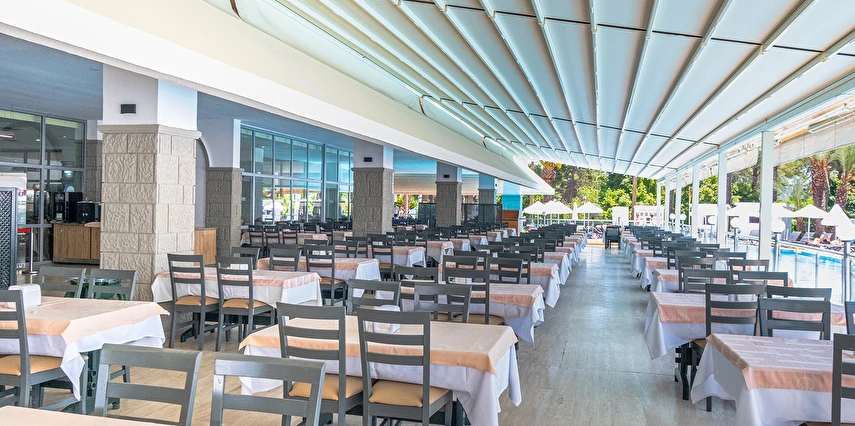 Sabah kahvaltısı, öğle ve akşam yemekleri açık büfe olup, tesisin belirlemiş olduğu markalar dahilinde alkollü ve alkolsüz içecekler 24 saat ücretsizdir. Restoran ve barlarda sunulan ürünlerin içerik ve çeşitleri, Mart, Nisan, Kasım aylarını içeren sezon öncesi ve sonrası dönemlerde değişiklik gösterebilmektedir. Açık büfede diyet menüler mevcuttur. A La Carte Restaurant ( Minimum 5 gece konaklamada 1 A La Carte restaurant 1 defa ücretsizdir.)(Rezervasyonlu) Türk Kahvesi ücretsizdir.