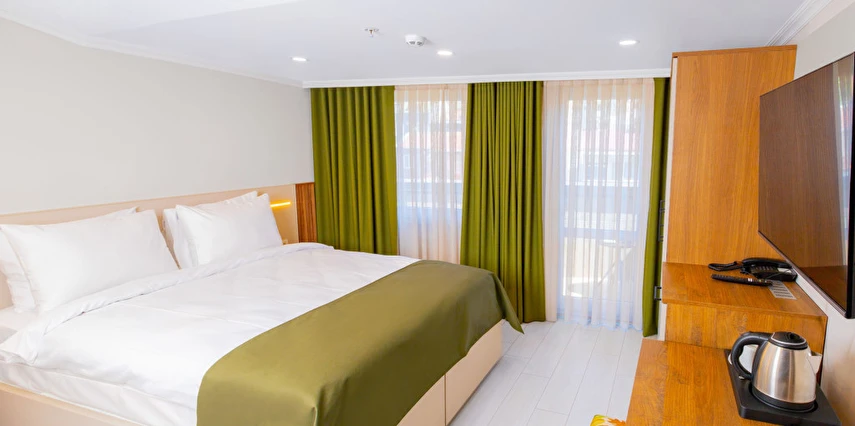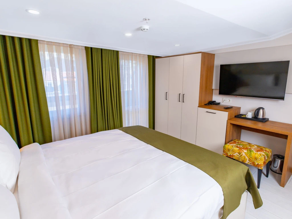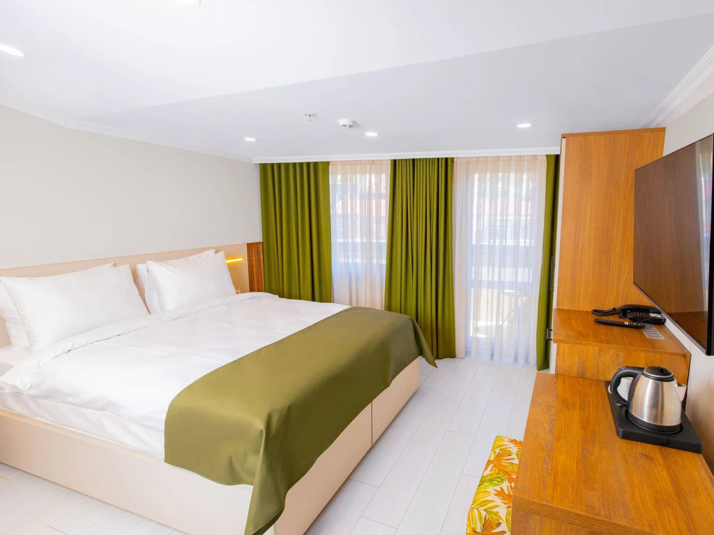 Modern tasarıma sahip odalarımızda klima, düz ekran TV, özel banyo, ücretsiz banyo malzemeleri ve saç kurutma makinesi gibi ihtiyaç duyabileceğiniz tüm olanaklar yer almaktadır. Bazı odalarımız balkon ve oturma alanı ile daha geniş ve ferah bir konaklama sunarken, tesis genelinde sunulan ücretsiz WiFi erişimiyle her an bağlantıda kalabilirsiniz.